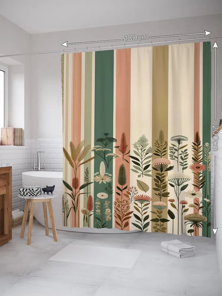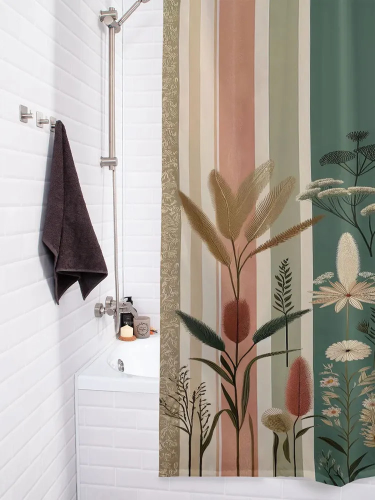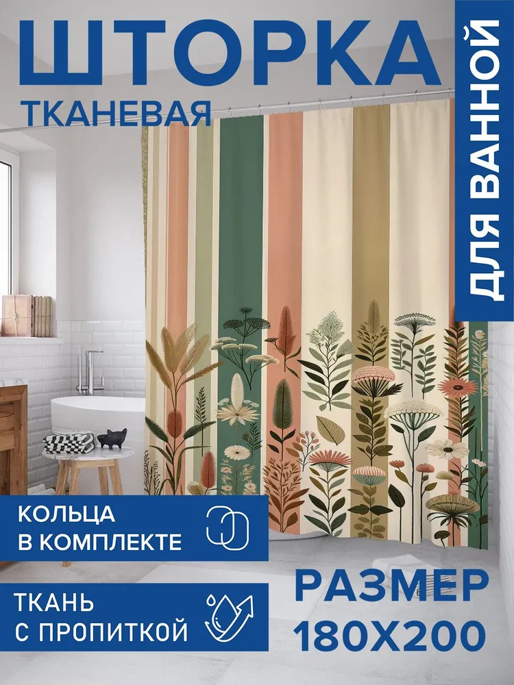 Штора для ванной «Сухоцветы в полоску» | Сухоцветы в полоску | JoyArty