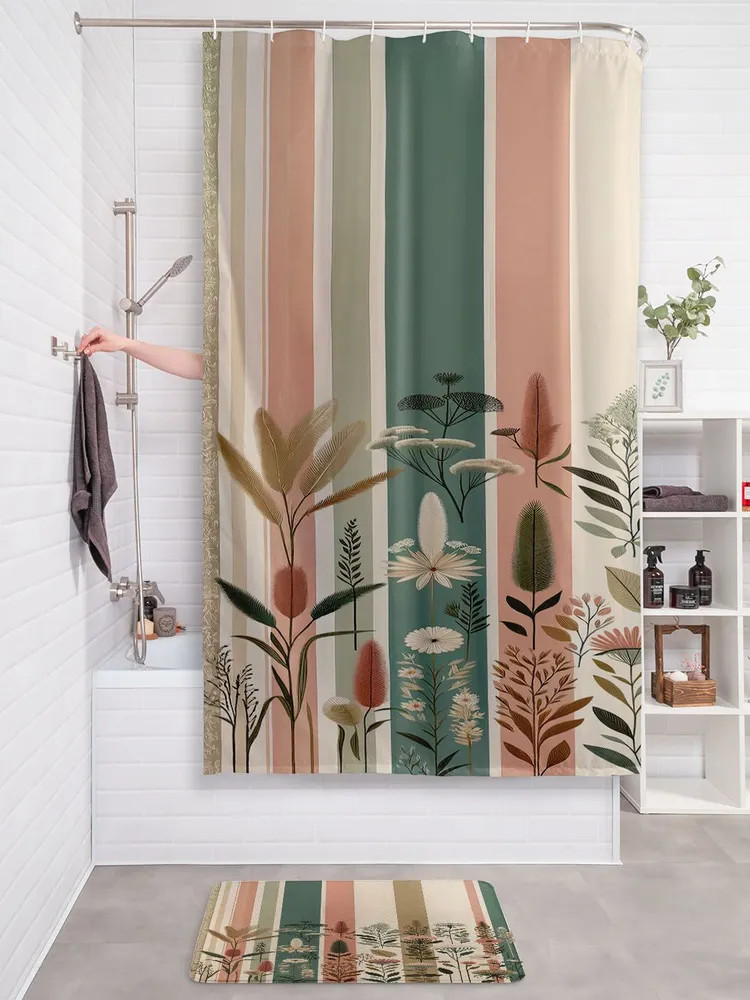 JoyArty Штора для ванной «Сухоцветы в полоску»