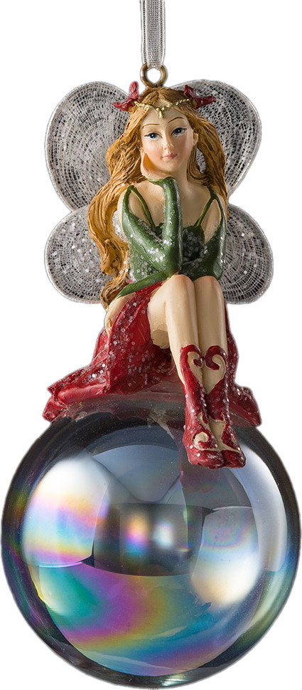Серия: Лесное царство Красивая эльфийка изящно сидит на крупном перламутровом шаре, похожим на мыльный пузырь. Наряд персонажа усыпан прозрачными блестками-хлопьями, что создает эффект засахаренности. Украшение является достаточно крупным, при этом имеет легкий вес. Шар выполнен из стекла. |