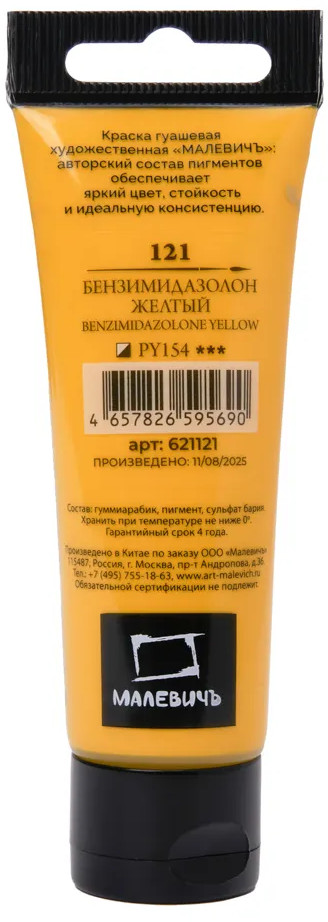 МалевичЪ Гуашь художественная, №121 бензимидазолон желтый