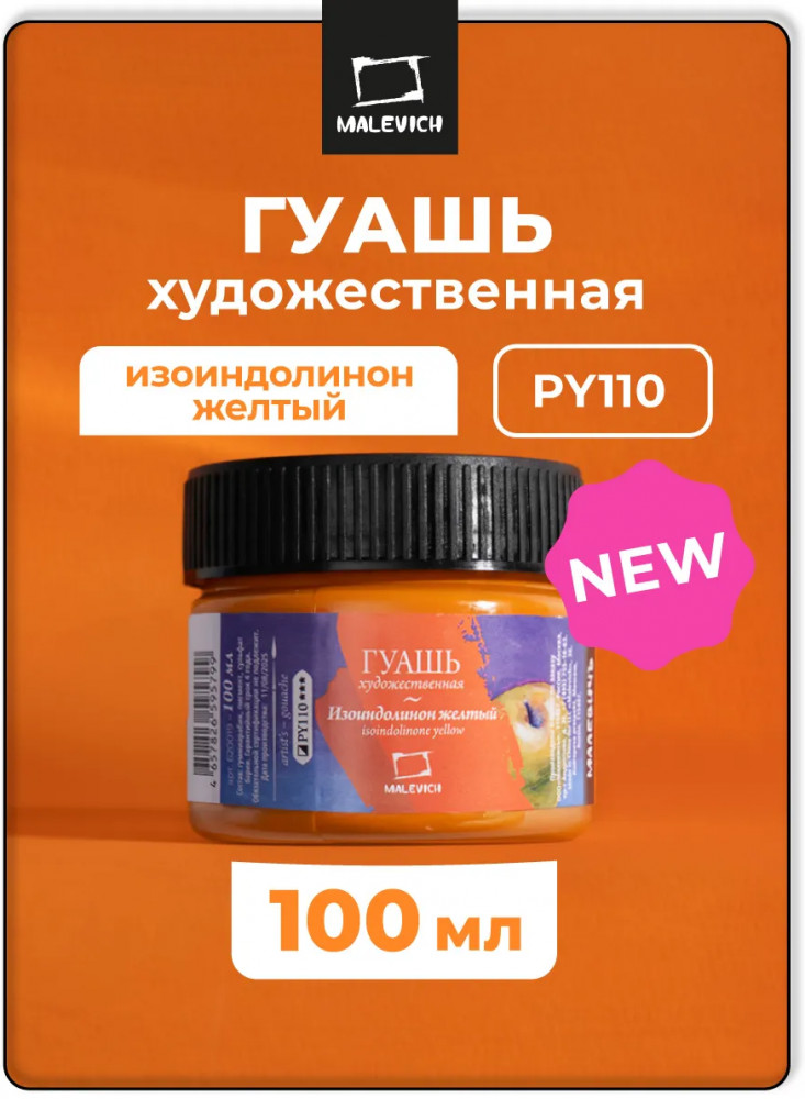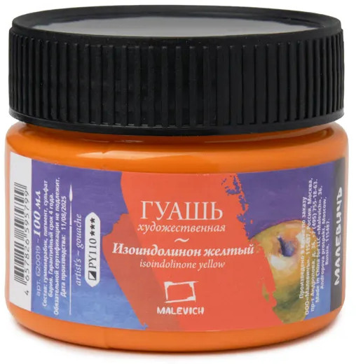 МалевичЪ Гуашь художественная профессиональная, изоиндолинон желтый