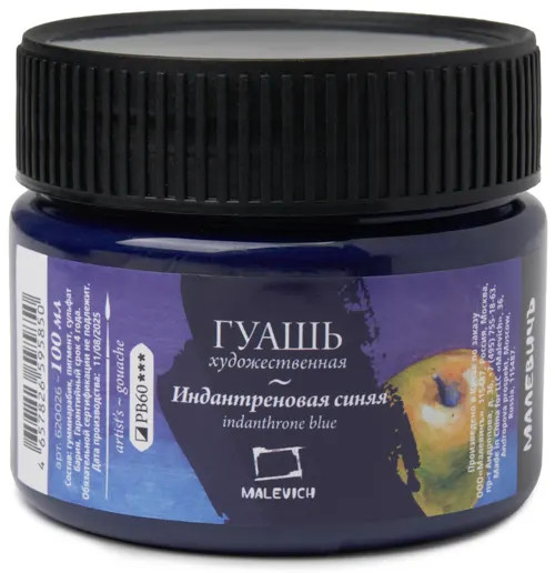 МалевичЪ Гуашь художественная профессиональная, индантреновая синяя