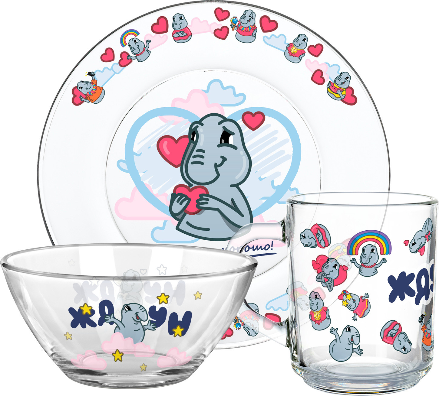 Серия: Ждун Каждый приём пищи с этим набором превращается в маленький праздник — яркая посуда из прочного стекла сделает еду вкуснее, настроение веселее, а заботливым родителям подарит уверенность в безопасности и качестве! |