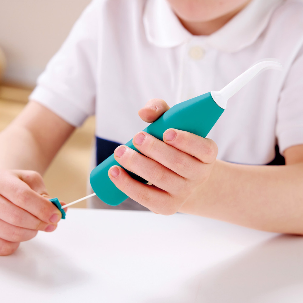 • реалистичные инструменты: комплект включает зеркало, шприц, зубную нить и щипцы для удаления зубов, позволяющие имитировать посещение стоматолога и снизить страх перед врачами;