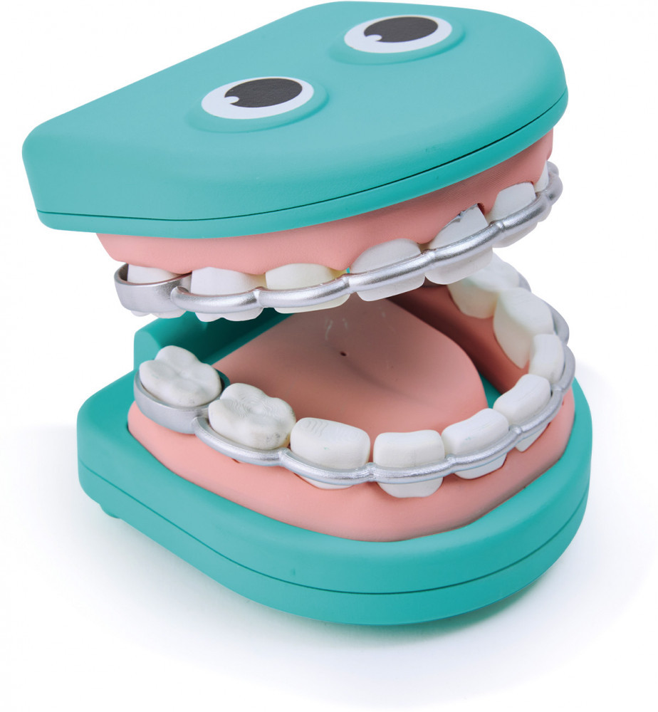 • комплект инструментов для полной роли врача-стоматолога: помимо основных предметов имеются верхние и нижние ортодонтические пластинки, кусочки сладостей и даже именной бейджик.