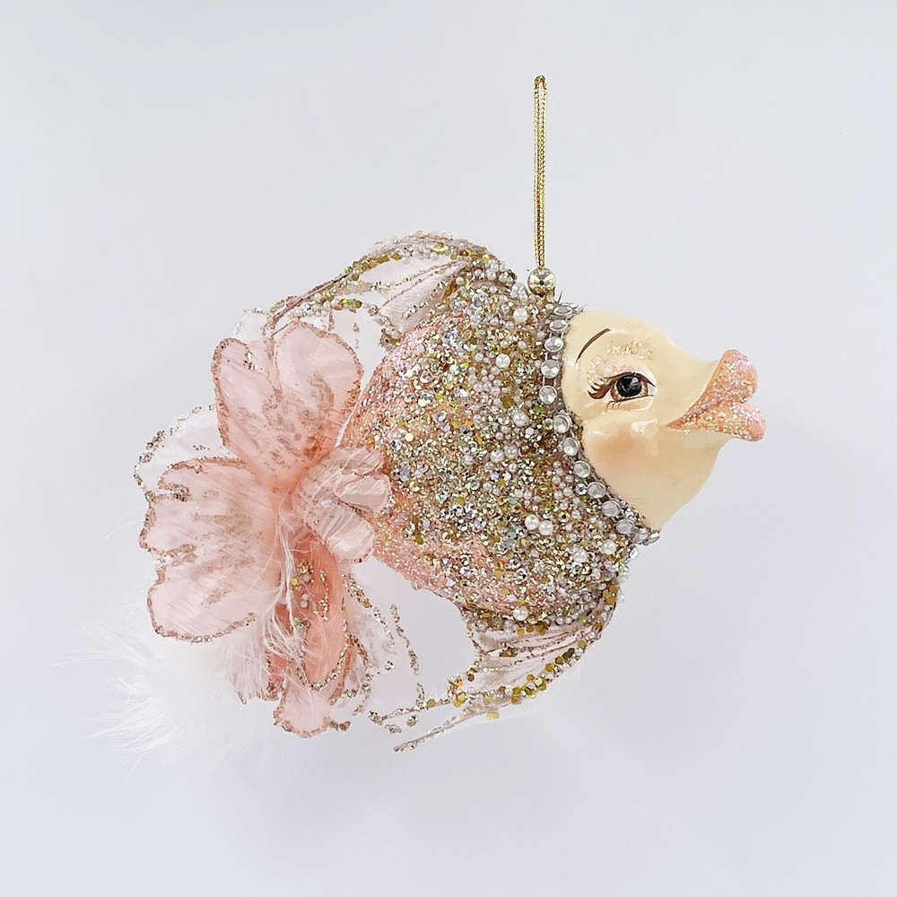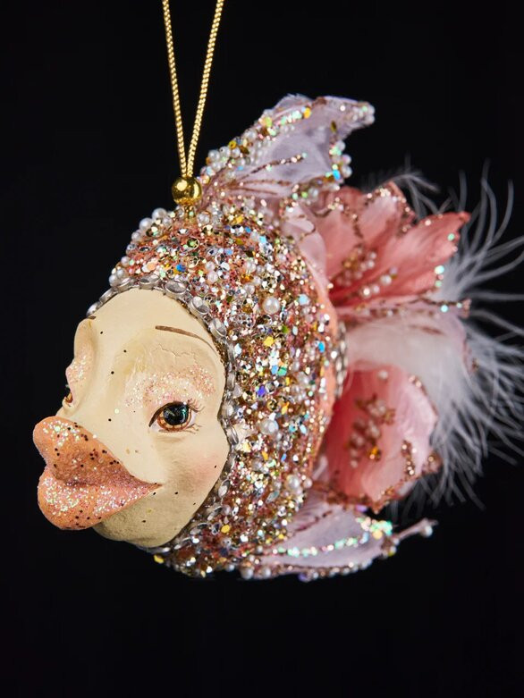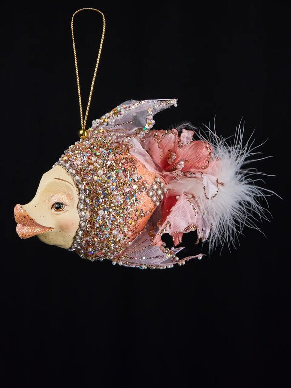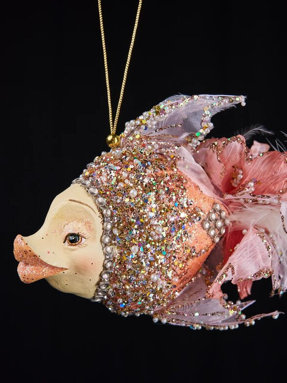 Christmas DeLuxe Винтажное ёлочное украшение «Рыба-ангел с перьями глиттером и бусинами»