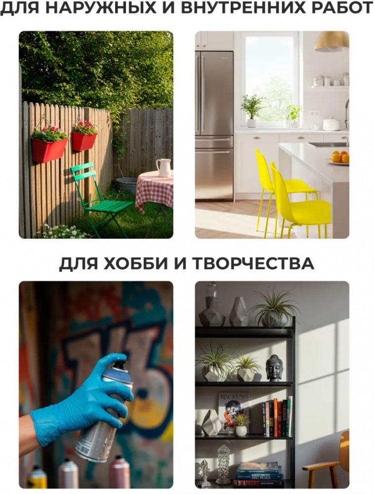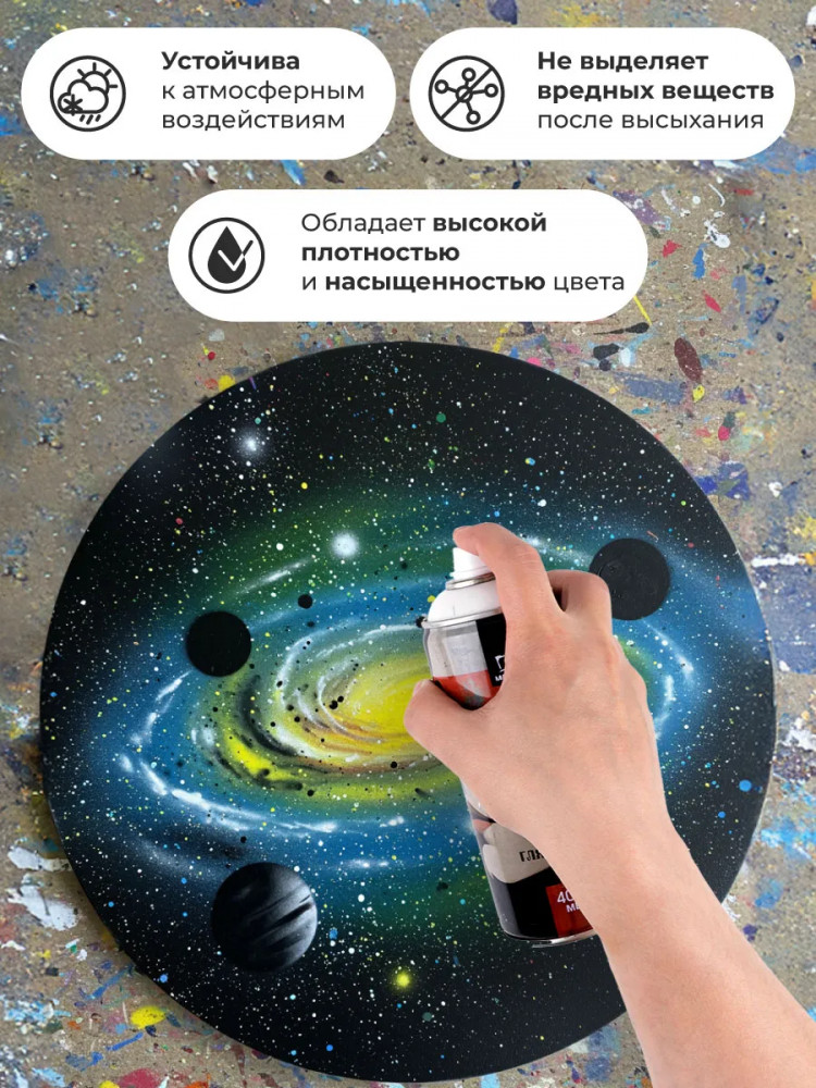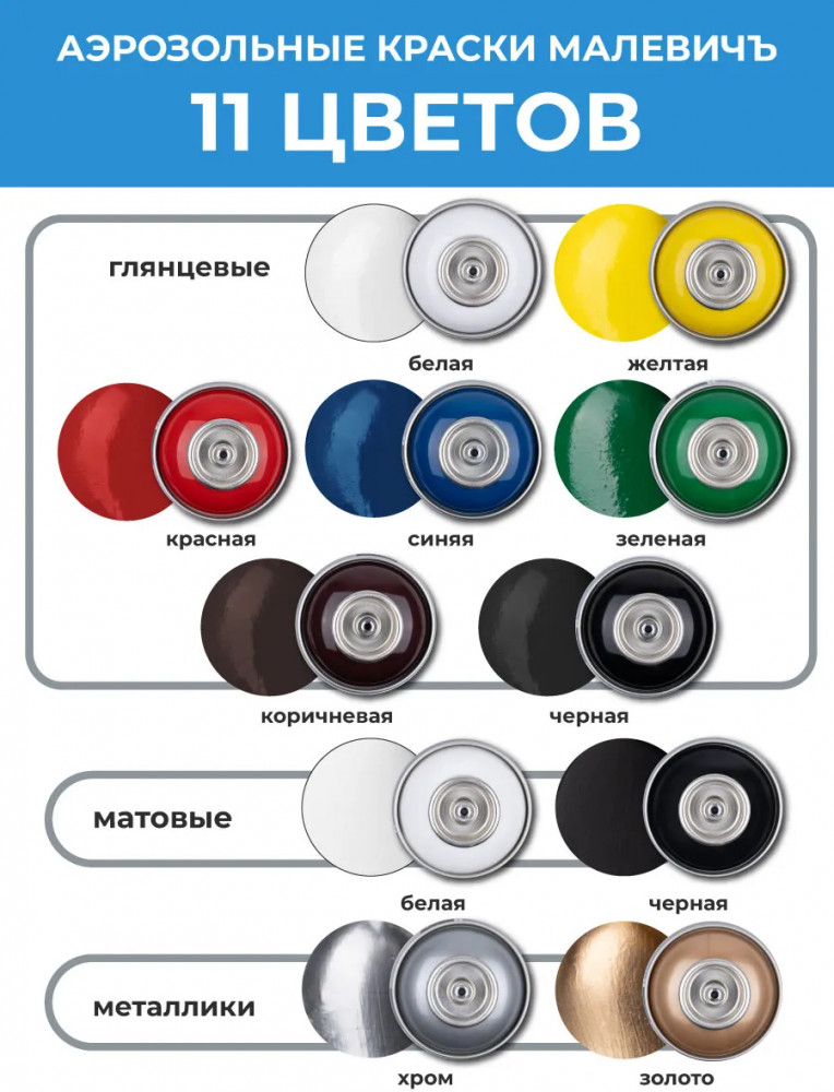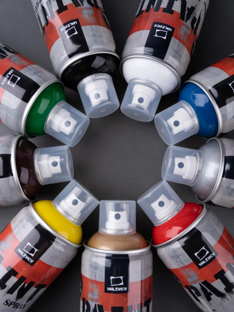 Аэрозольная акриловая краска Малевичъ. Универсальные акриловые краски в спрее — это высококачественная краска на органической основе. Отличается быстрым высыханием и высокой укрывистостью, идеально подходят для самых разнообразных проектов как в интерьере, так и на открытом воздухе. Благодаря тончайшему распределению частиц по поверхности она обеспечивает равномерное и плотное покрытие на любых материалах — от металла и ABS пластика до дерева. Её стойкость к ультрафиолетовому излучению и внешним воздействиям гарантирует долговечность и яркость цвета. Идеально подходящая для художественных и декоративных работ, эта аэрозольная краска Малевич позволяет создавать яркие и выразительные работы, обеспечивая высокое качество и надежность результата.