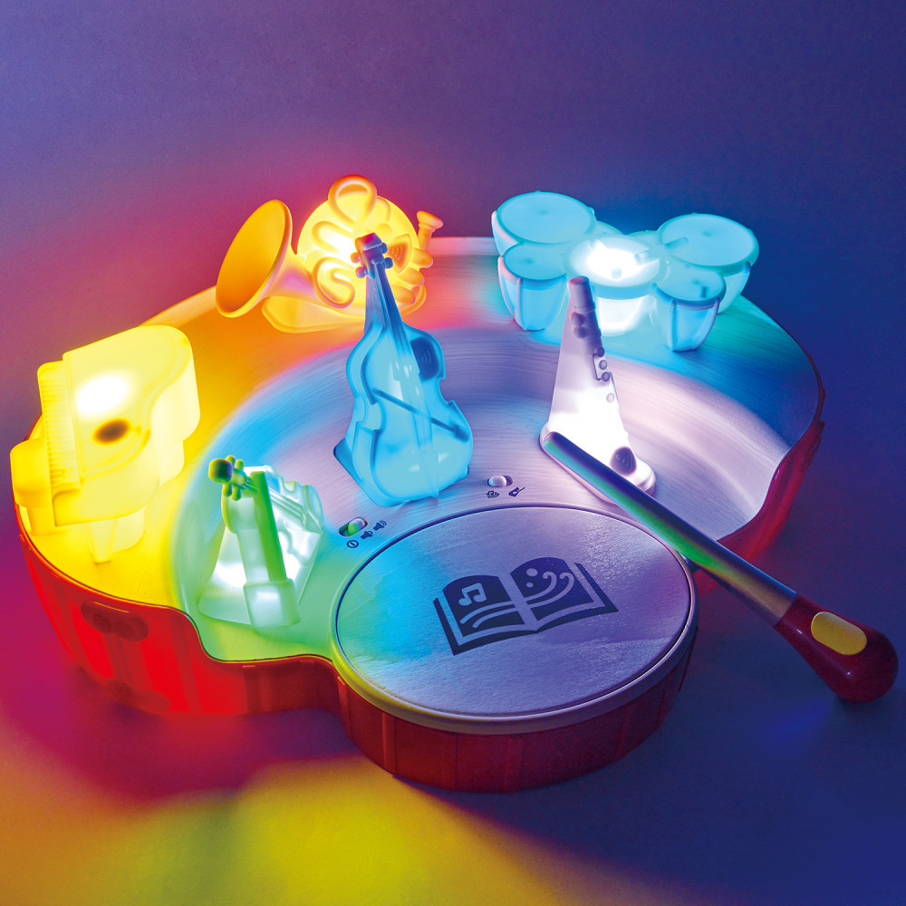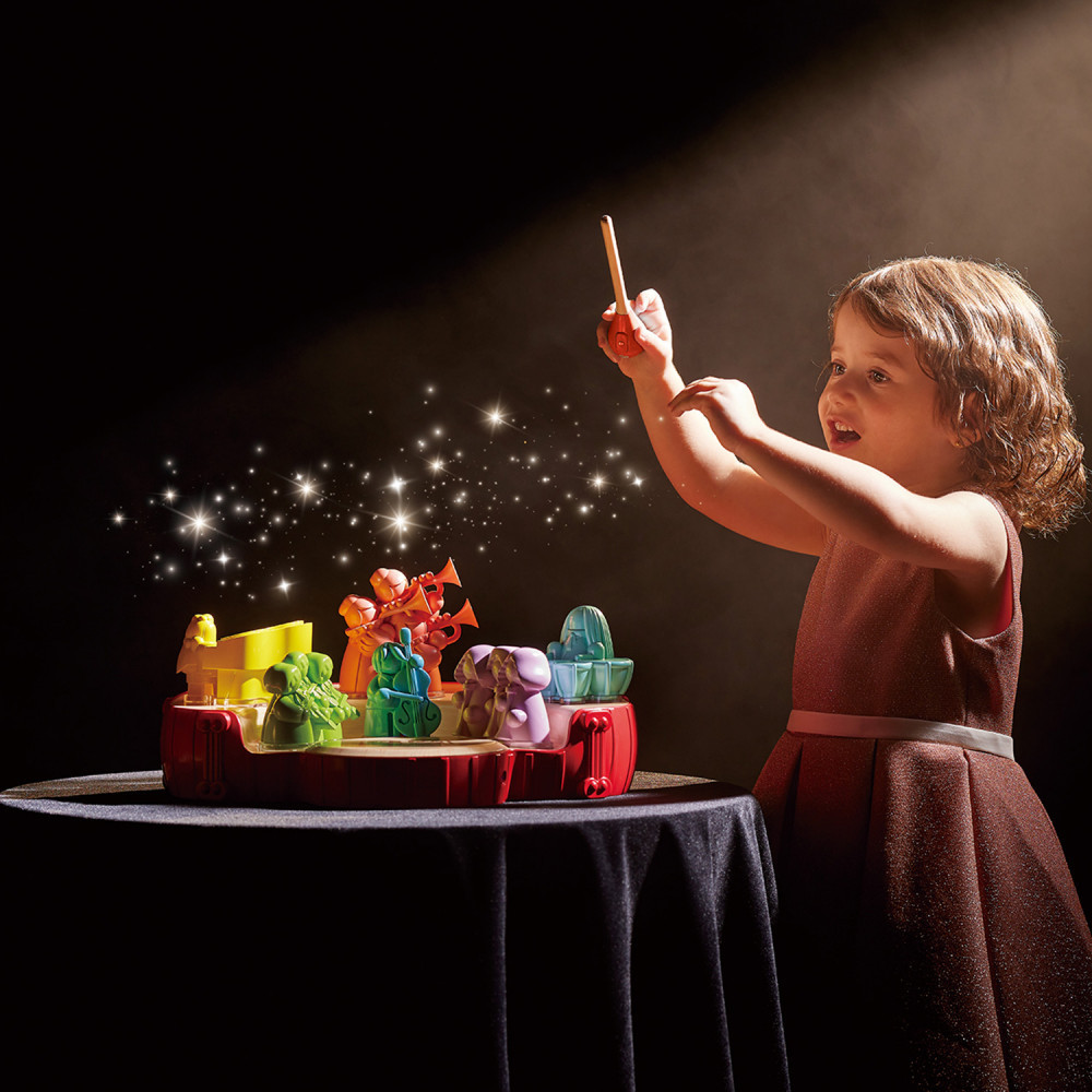 Игрушка включает шесть классических оркестровых инструментов с профессионально записанными звуками: труба, пианино, скрипка, виолончель, кларнет и барабаны. Эти инструменты подсвечиваются мягким светом при игре и позволяют воссоздать настоящую симфонию прямо дома. Достаточно коснуться каждого инструмента рукой или специальной палочкой, чтобы услышать его звучание. Игра предлагает два режима: «Авто», где звучит готовая мелодия, и «Живое исполнение», где ребенок становится полноценным дирижером, управляя мелодией и темпом при помощи палочки и жестов. В комплекте идёт учебное пособие, которое рассказывает основы работы симфонического оркестра, знакомит с инструментами, ритмом и гармонией. Так ребенок не только играет, но и учится, расширяет кругозор и развивает свои творческие способности.