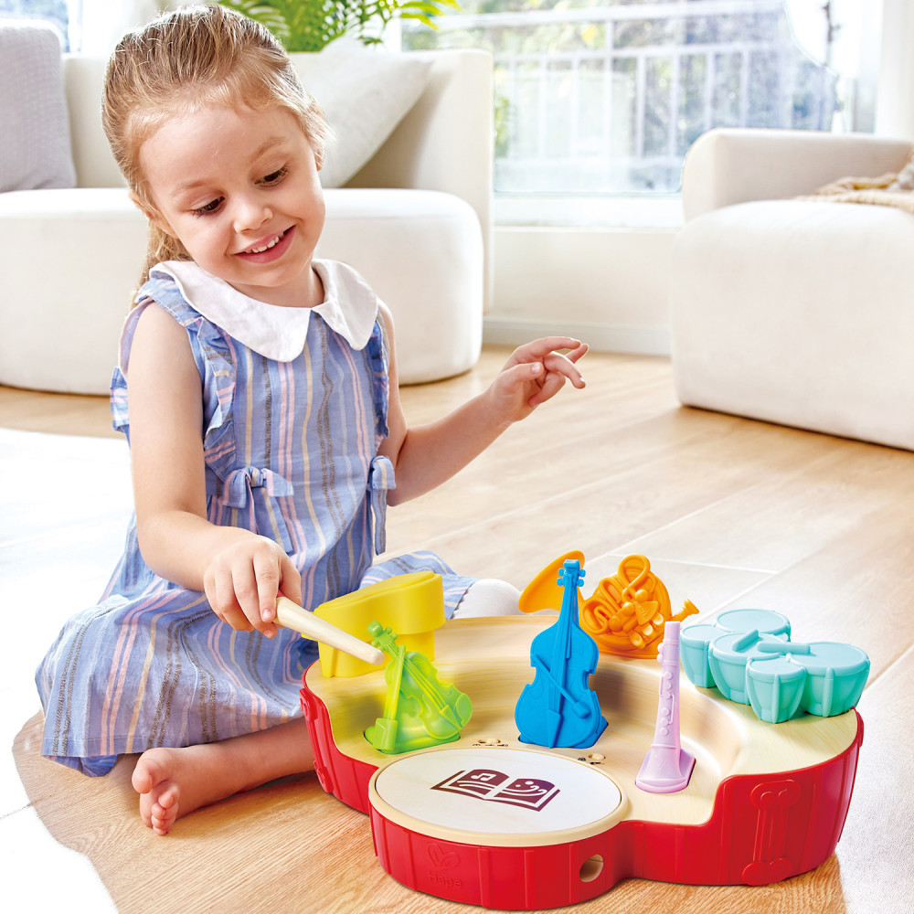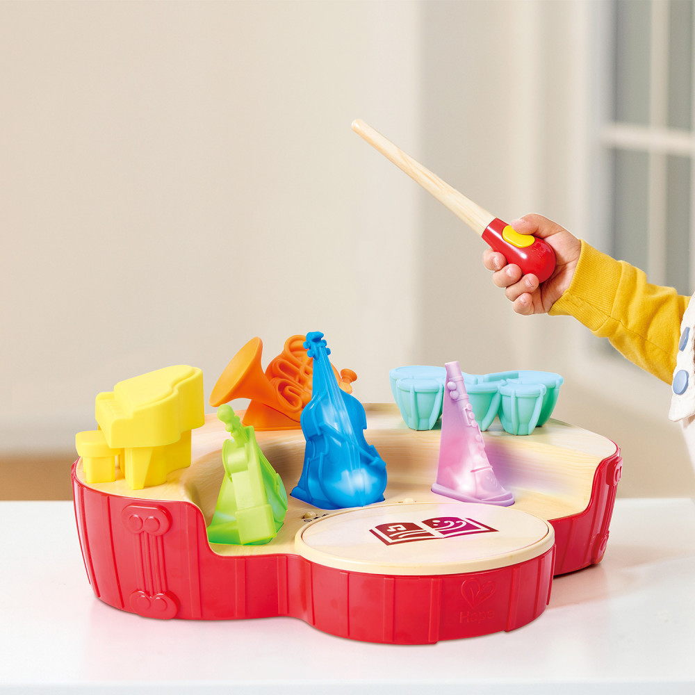 В данный момент этот товар отсутствует в продаже. Возможно, у нас найдется аналогичный или похожий товар  здесь. Компания Hape один из крупнейших в мире производителей игрушек из экологически чистых материалов. Игрушки Hape креативны и безопасны, соответствуют самым строгим международным стандартам качества и безопасности. Позвольте своему ребенку почувствовать себя настоящим маэстро с этой удивительной интерактивной игрушкой! Игровой набор «Мини оркестр» Маленький Дирижёр превращает изучение музыки в веселый и познавательный процесс, позволяя ребёнку ощутить себя частью настоящего оркестра. Достаточно просто взмахнуть дирижерской палочкой, чтобы управлять оркестром и исследовать магию музыки.