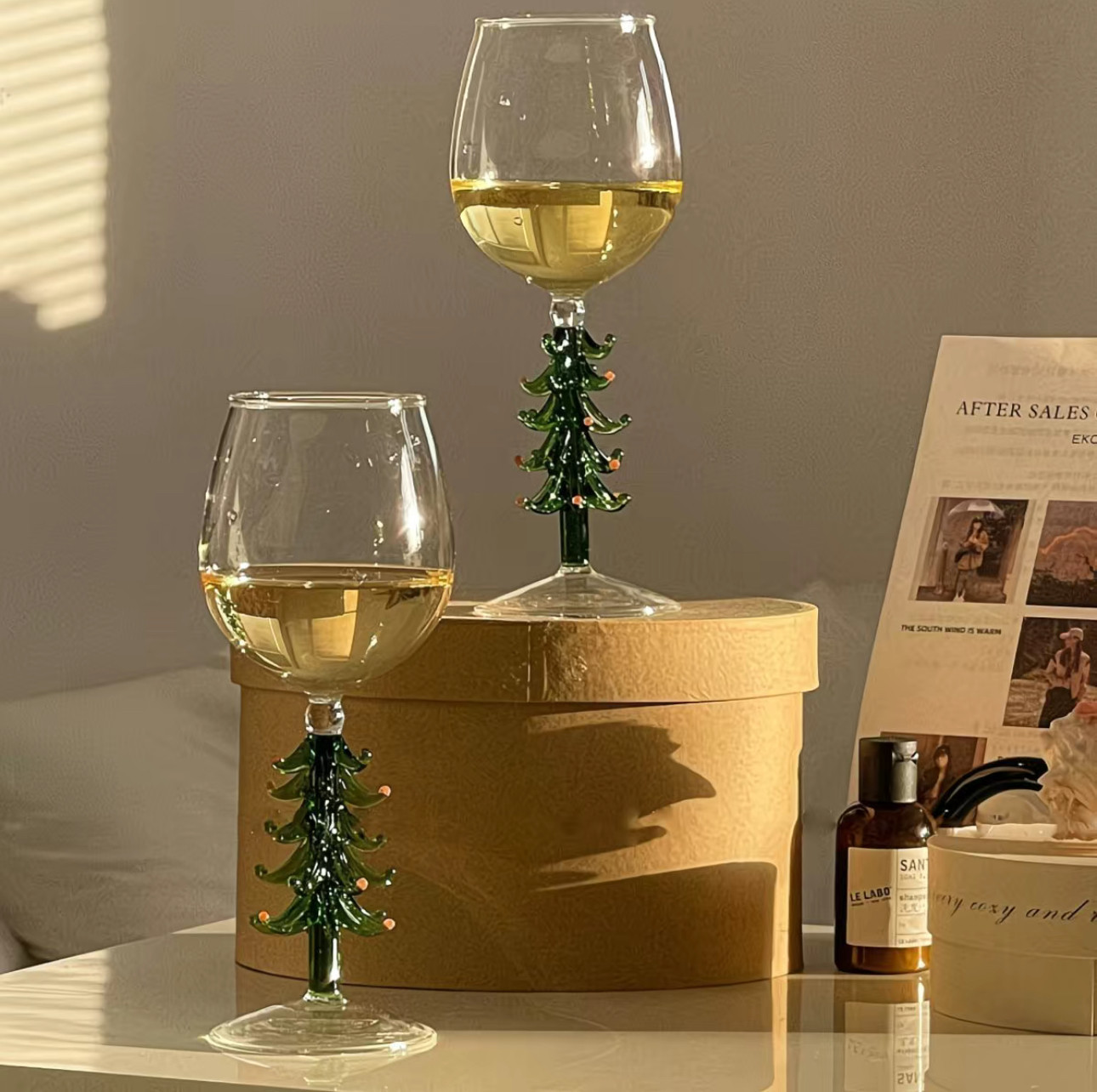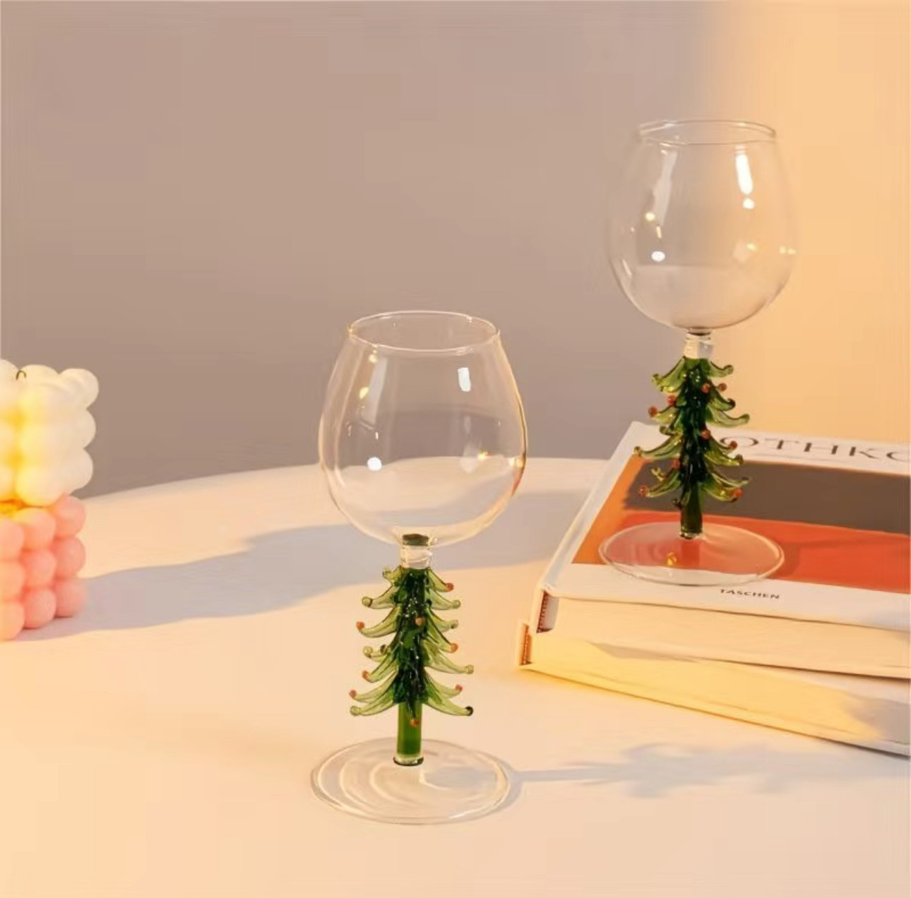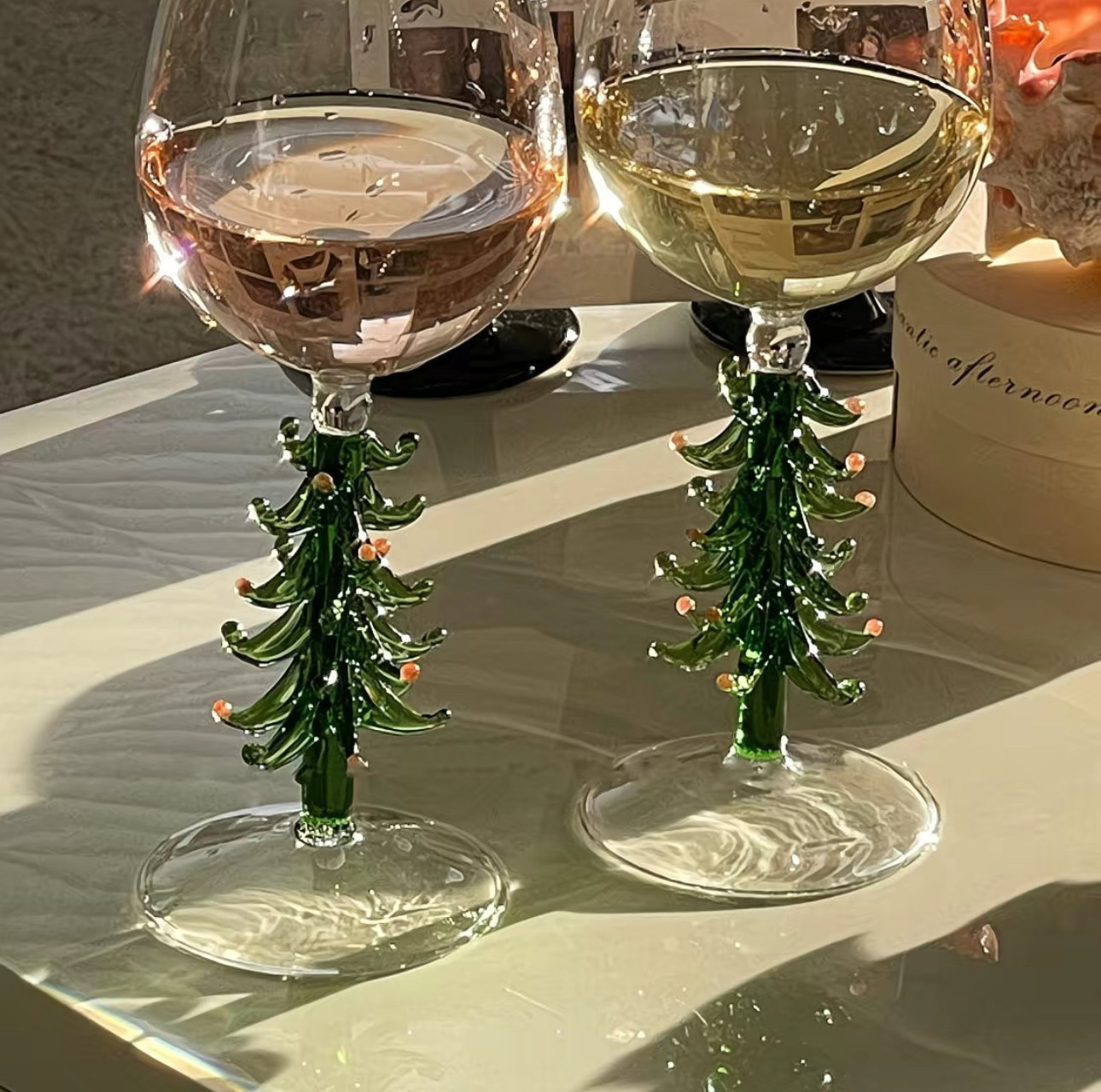 Стеклянный стакан с ножкой в форме ёлки — оригинальный и праздничный акцент для вашего стола! |