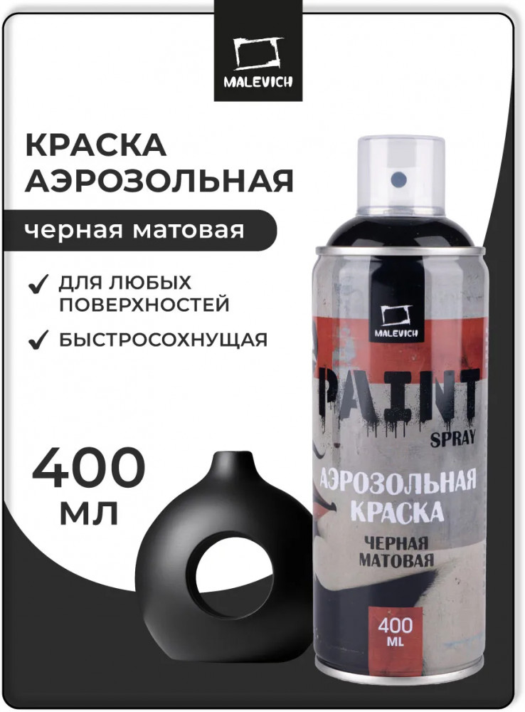 Аэрозольная акриловая краска Малевичъ. Универсальные акриловые краски в спрее — это высококачественная краска на органической основе. Отличается быстрым высыханием и высокой укрывистостью, идеально подходят для самых разнообразных проектов как в интерьере, так и на открытом воздухе. Благодаря тончайшему распределению частиц по поверхности она обеспечивает равномерное и плотное покрытие на любых материалах — от металла и ABS пластика до дерева. Её стойкость к ультрафиолетовому излучению и внешним воздействиям гарантирует долговечность и яркость цвета. Идеально подходящая для художественных и декоративных работ, эта аэрозольная краска Малевич позволяет создавать яркие и выразительные работы, обеспечивая высокое качество и надежность результата.