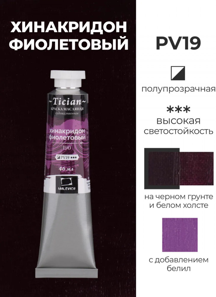 МалевичЪ Краска масляная художественная, 190 хинакридон фиолетовый