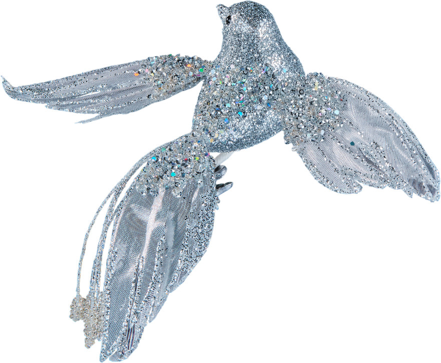 Елочное украшение Птица счастья от Christmas DeLuxe — это изысканное украшение, выполненное в серебряных тонах с использованием бисера. Его размеры составляют 18×25 см, что делает его заметным элементом декора. Украшение оснащено клипсой, что позволяет легко закрепить его на елке. Эта декоративная птица выполнена в серебристых тонах и украшена блестящими элементами, такими как бисер и пайетки. Она имеет изящные крылья с прозрачными вставками, которые создают эффект легкости и воздушности. Хвост птицы украшен по-особенному, что добавляет ей утонченности. Птица выглядит как символ счастья и праздника, идеально подходящий для украшения новогодней елки или интерьера. Ее серебряный цвет и блеск делают ее особенно привлекательной и роскошной.