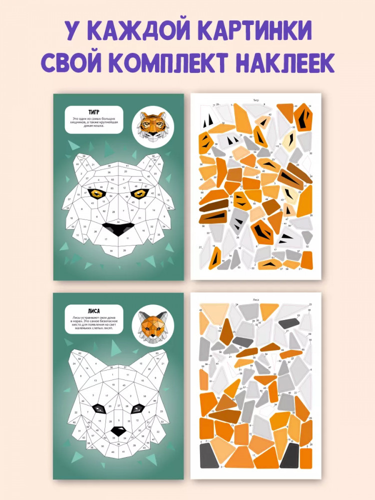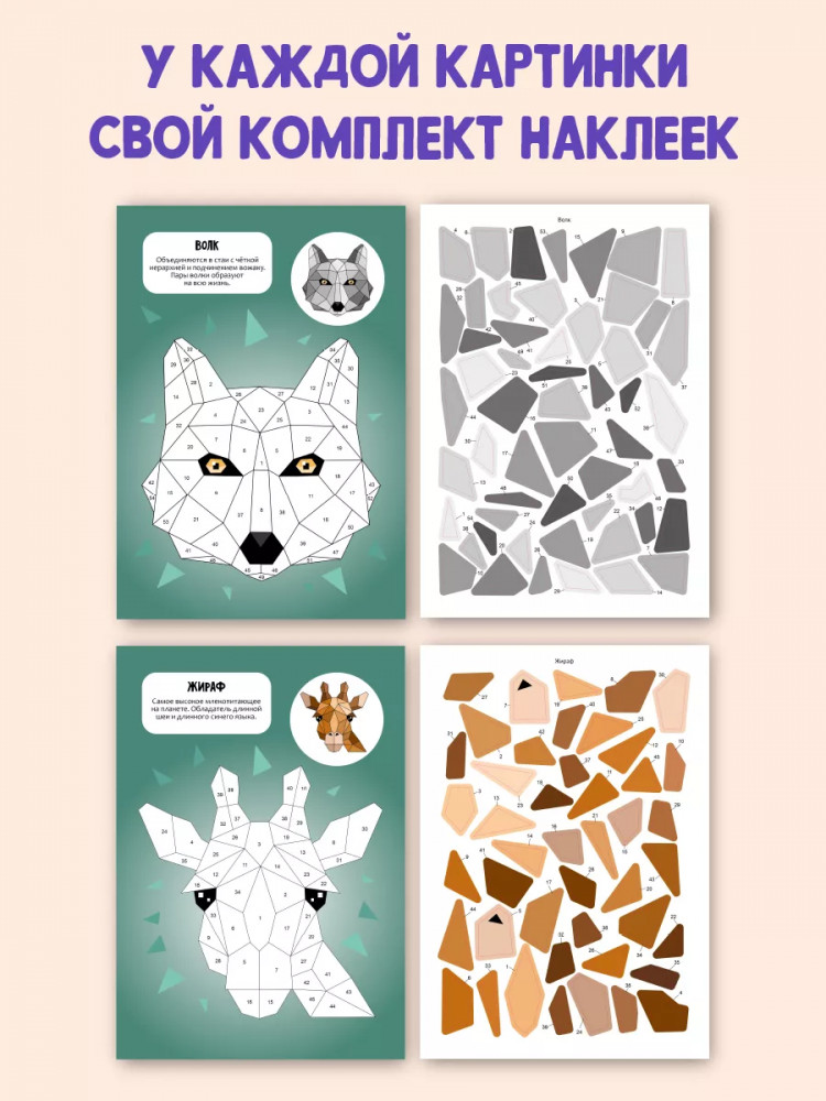 Серия: Раскрась наклейками по номерам Если вы любите рисовать по номерам, но захотелось попробовать что-то новое, то представляем вам серию «Раскрась наклейками по номерам». Интерактивная книга из 4 красочных иллюстраций станет отличным способом утолить скуку детям и взрослым. На каждой странице раскраски по номерам — образец рисунка и его символьная схема. К каждому рисунку идет свой подписанный набор стикерпака из 246 геометрических фигур. Всем элементам рисунка и наклейкам присвоены номера соответствия друг другу, поэтому поиск деталей не займет много времени. Наклейки для детей не имеют запаха и полностью безопасны. Наклеивание стикеров в нужные поля поможет малышу изучить цифры, цвета, развить внимательность, аккуратность, мелкую моторику, пространственное мышление, способность к концентрации. Наклейки детские будут способствовать и творческому развитию ребенка. |