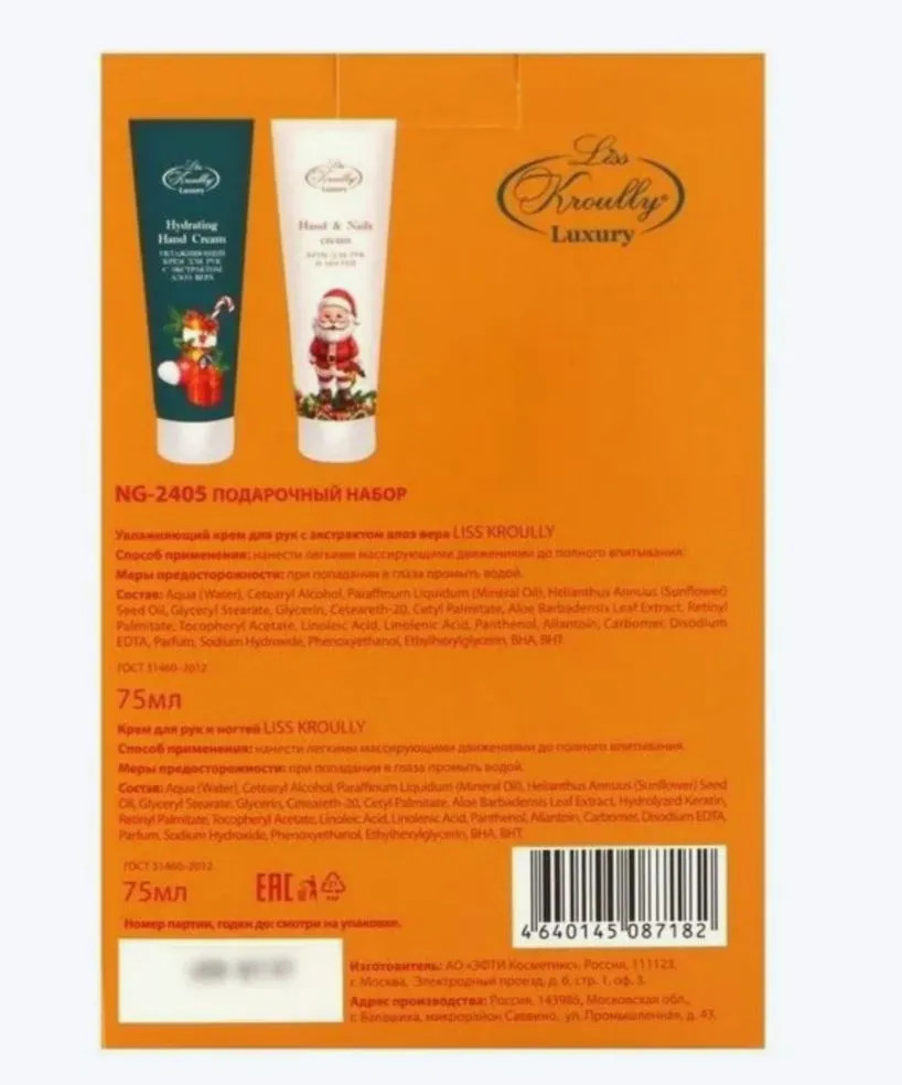 Liss Kroully LLP Набор подарочный для ухода за кожей рукновинка В данный момент этот товар отсутствует в продаже. Возможно, у нас найдется аналогичный или похожий товар здесь. Подарочный набор Liss Kroully состоит из двух кремов, каждый из которых создан для интенсивного ухода за кожей рук и ногтей. Эти кремы обеспечат глубокое увлажнение, питание и защиту, делая вашу кожу мягкой, гладкой и ухоженной. |