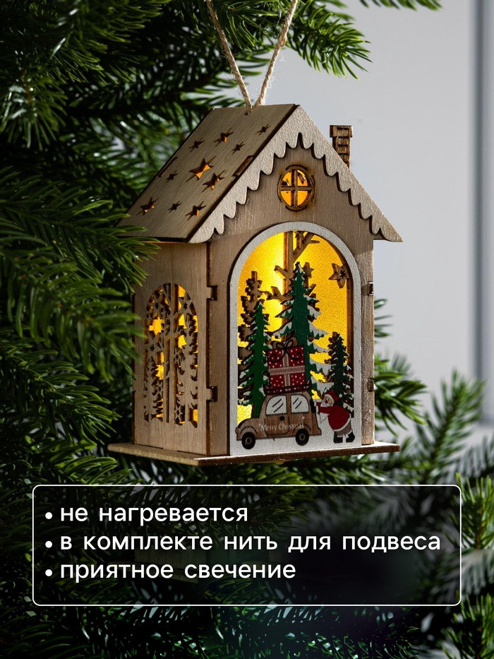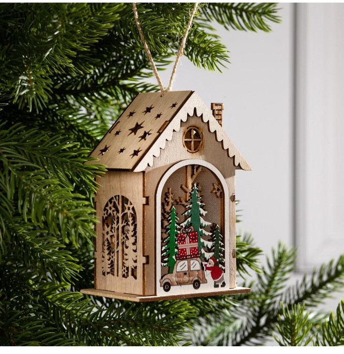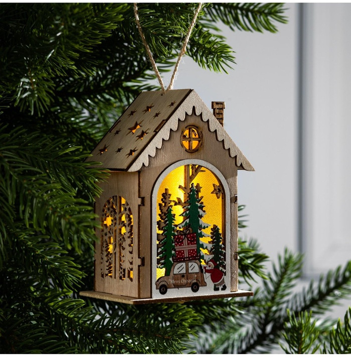 Luazon Lighting Игрушка ёлочная «Домик с Дедом Морозом и машиной»новинка -35%