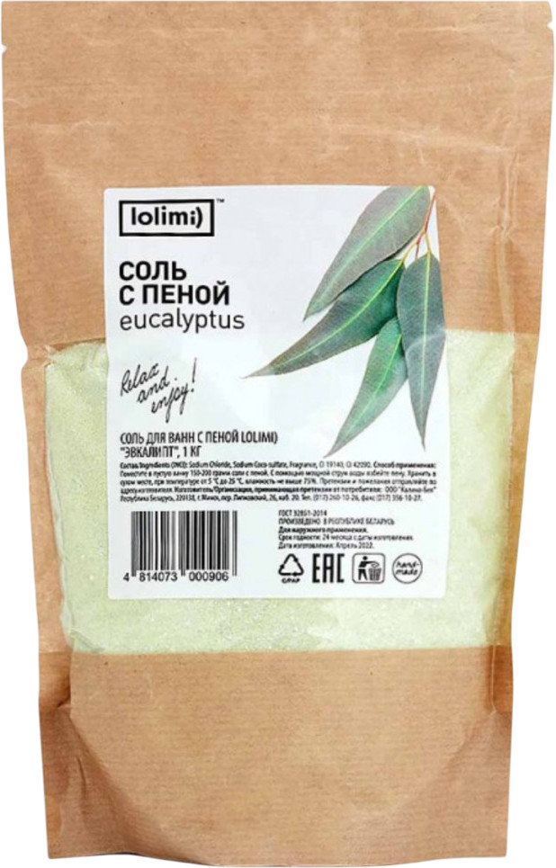 Соль для ванн с пеной «Эвкалипт» 1 кг от Lolimi превращает обычное принятие ванны в ароматерапевтический ритуал, наполняя пространство свежестью лесной хвои и очищающим ароматом эвкалипта. При растворении в воде образует лёгкую пену, которая нежно обволакивает тело, помогая расслабиться и снять напряжение. Средство способствует улучшению кровообращения, тонусу кожи и мягкому очищению от загрязнений и «усталости». После процедуры кожа ощущается гладкой, свежей и чуть ароматной, будто после прогулки в хвойном лесу. Продукт подходит для всех типов кожи и особенно уместен в вечерний уход, когда хочется восстановиться и успокоиться. Упаковка объемом 1 кг делает его выгодным выбором для регулярного использования или семейных купаний.