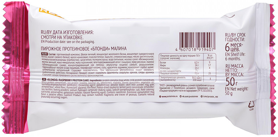 Protein Rex Пирожное протеиновое «Блонди малина»