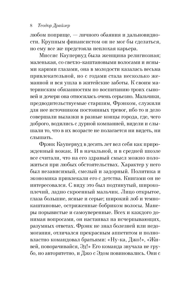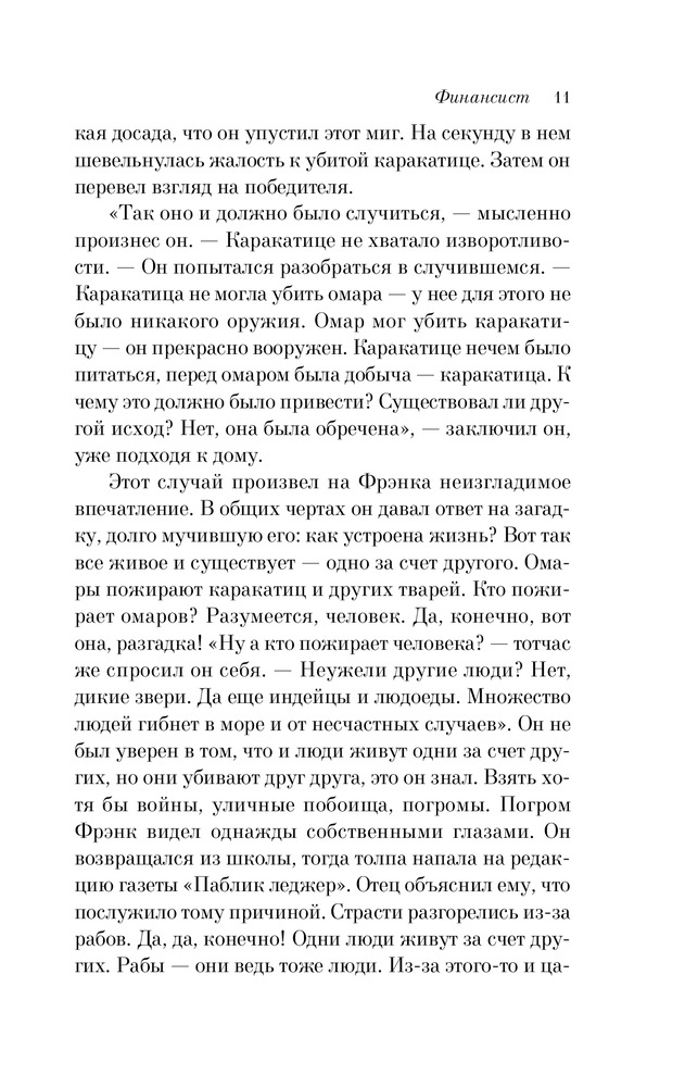 Я просто в восторге от этой книги. Она меня ошарашила своим непредсказуемым, интересным сюжетом. Никак не мог оторваться от нее. Это вторая книга великого Теодора Драйзера ,которую я прочитал(первая Американская трагедия). Я походу теперь его фанат. Всем рекомендую. Это шедевр!