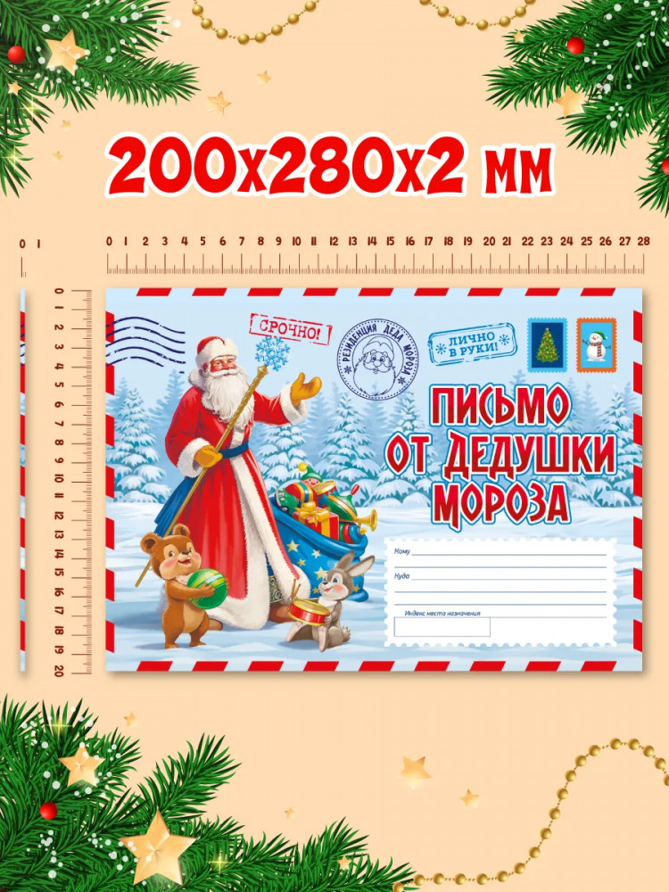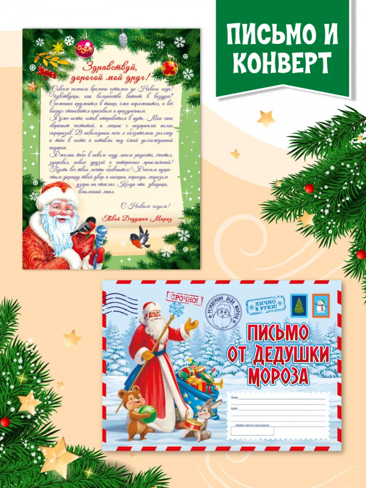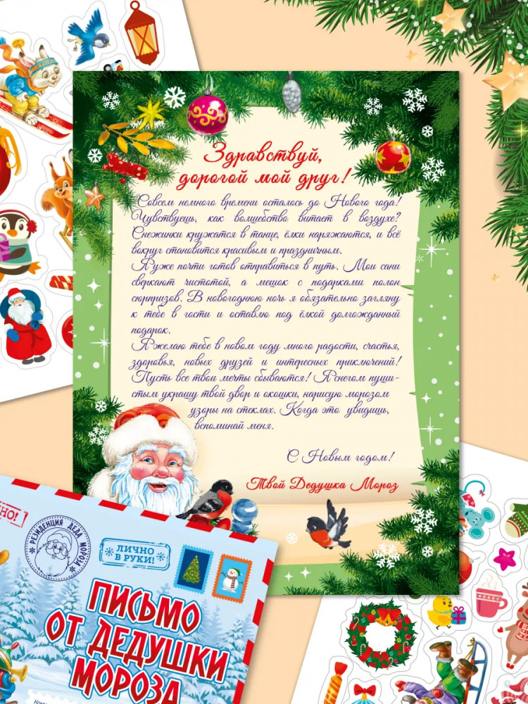 Мы с трепетом писали письмо Деду Морозу, но не получали ответа. Подарите вашим детям на Новый год 2026 настоящее чудо — красивый конверт от Дедушки Мороза в новогоднем оформлении и с маркой. Этот новогодний конверт из картона формата А4 станет волшебным дополнением к празднику для малышей и их родителей. Внутри ребёнка ждёт тёплое новогоднее письмо от Деда Мороза. Также в конверте есть красивое стихотворение, похвальная грамота за хорошие дела, рецепт вкусного десерта и увлекательные игры — всё для подготовки к новогодним праздникам детям. Такой подарок от Деда Мороза поможет исполнить желания на новый год 2026 и создать незабываемый досуг в преддверии праздника. |