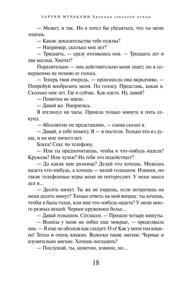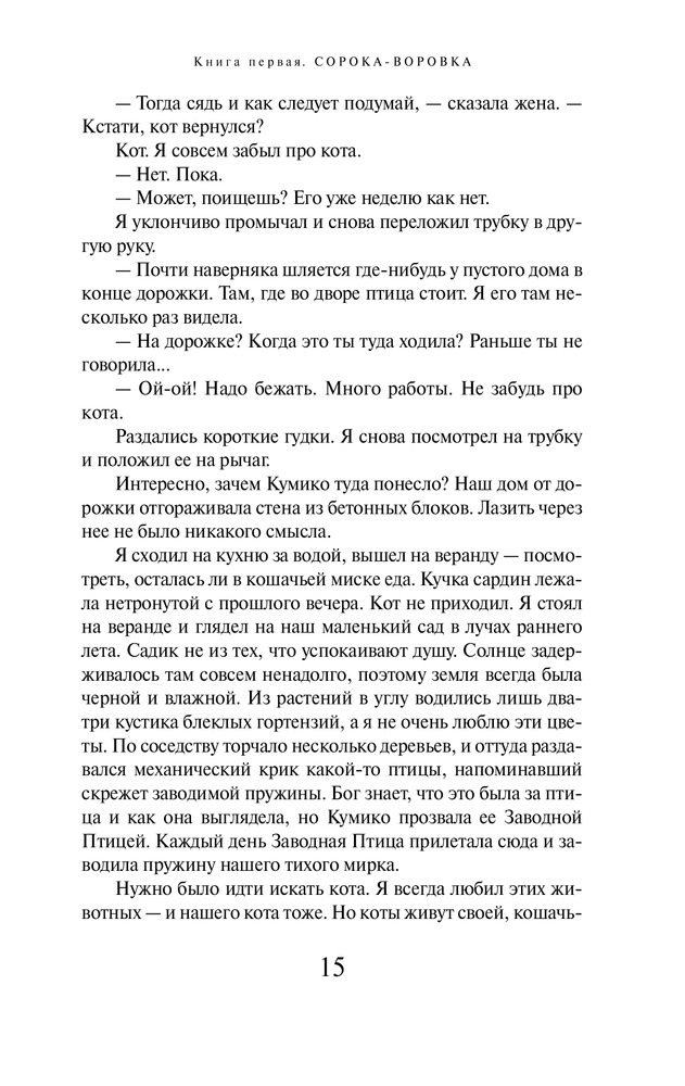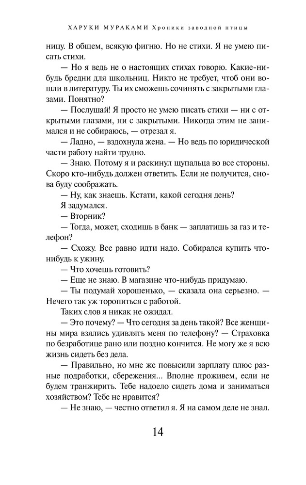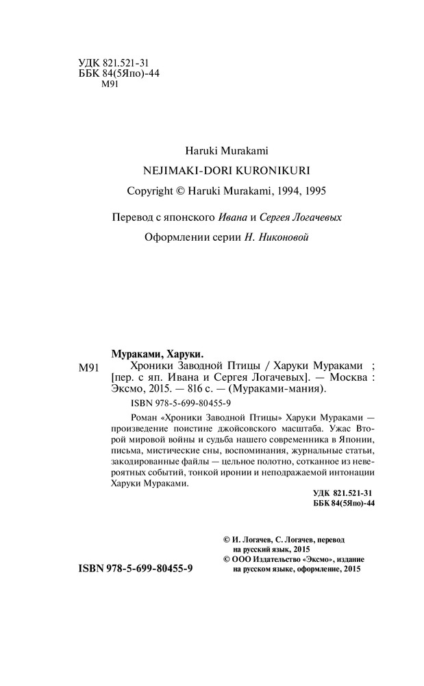Хроники Заводной ПтицыВ данный момент этот товар отсутствует в продаже. Возможно, у нас найдется аналогичный или похожий товар здесь. Серия: Мураками-мания. Новое оформление Роман «Хроники Заводной Птицы» Харуки Мураками — произведение поистине джойсовского масштаба. Ужас Второй мировой войны и судьба нашего современника в Японии, письма, мистические сны, воспоминания, журнальные статьи, закодированные файлы — цельное полотно, сотканное из невероятных событий, тонкой иронии и неподражаемой интонации Харуки Мураками. |