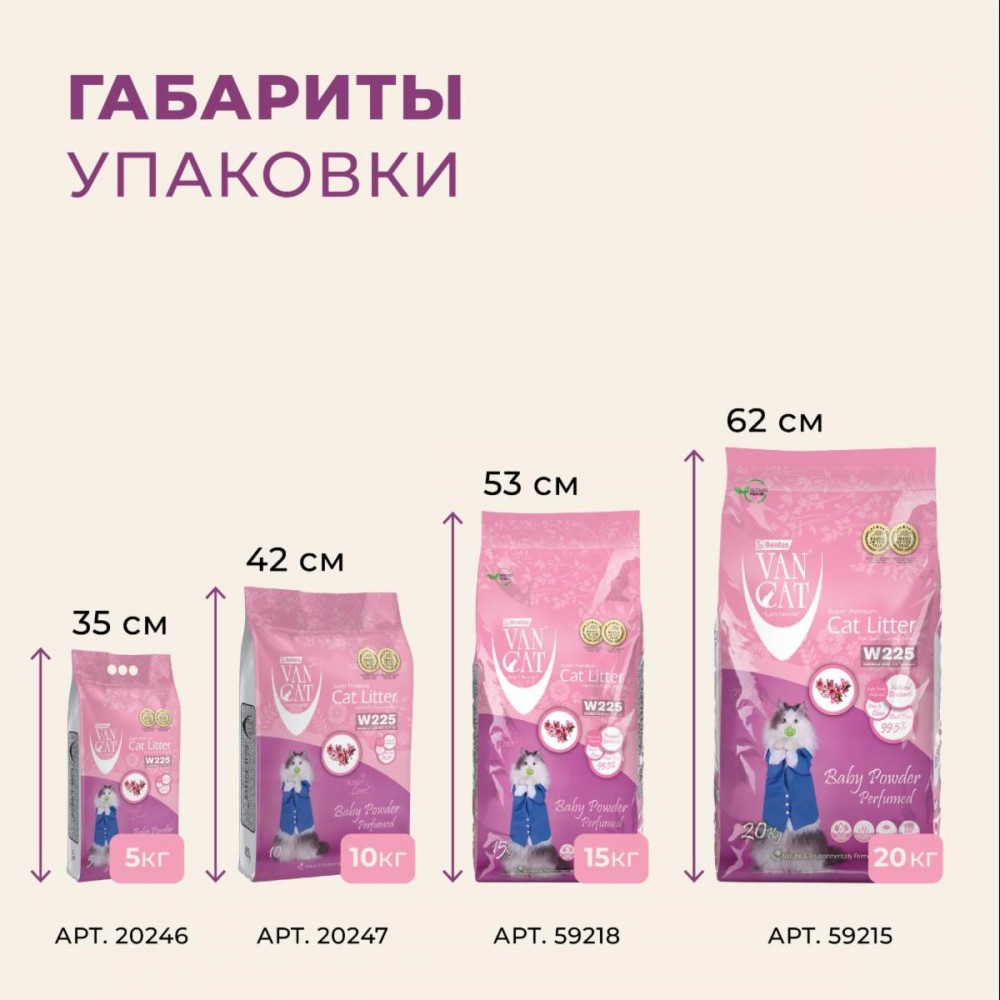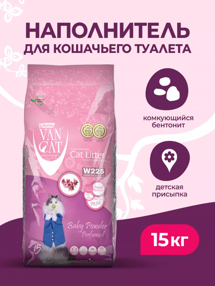 Van Cat Наполнитель для кошачьего туалета комкующийся «Baby Powder»