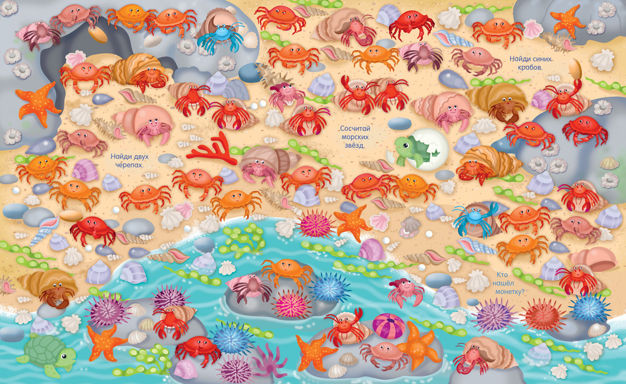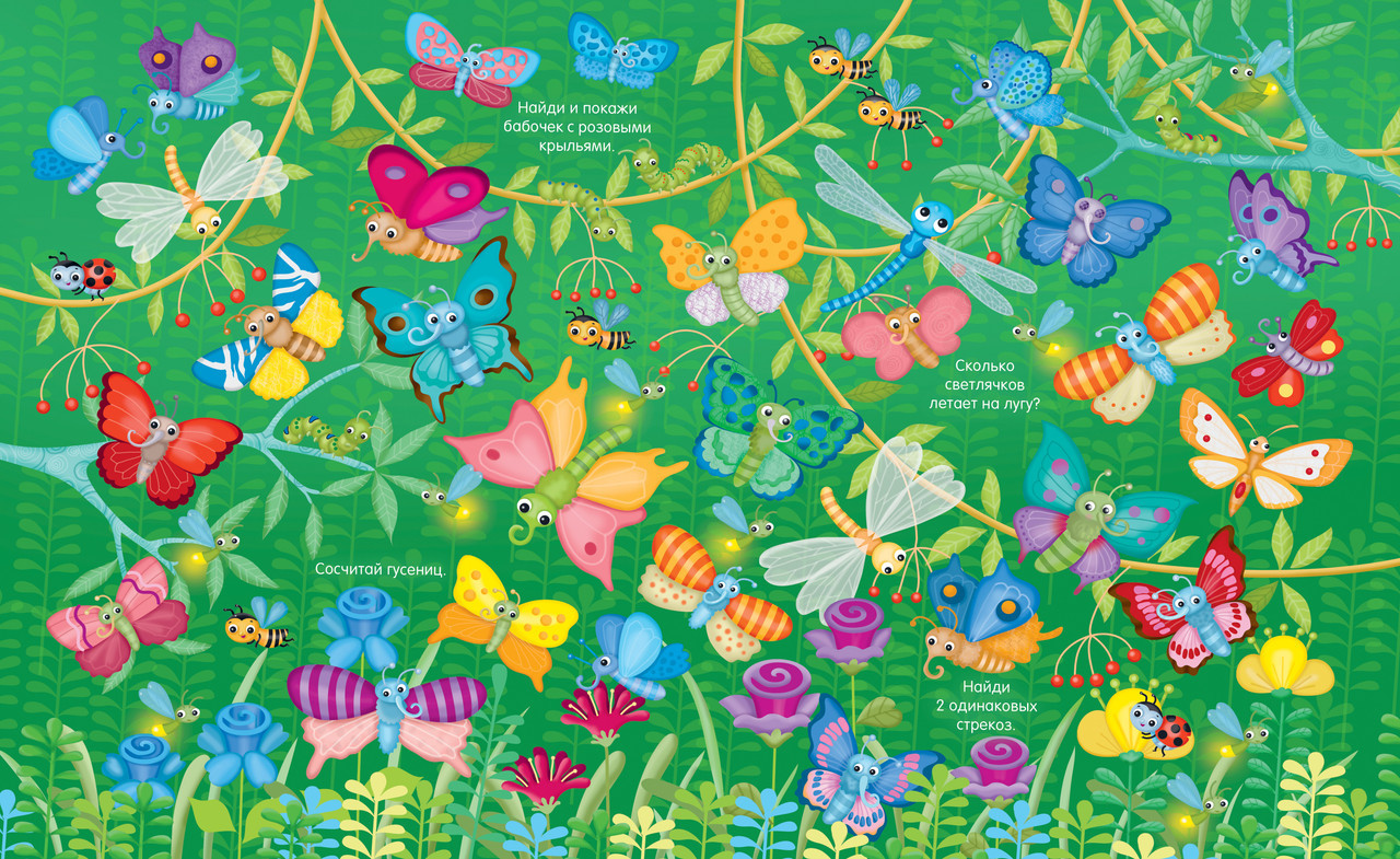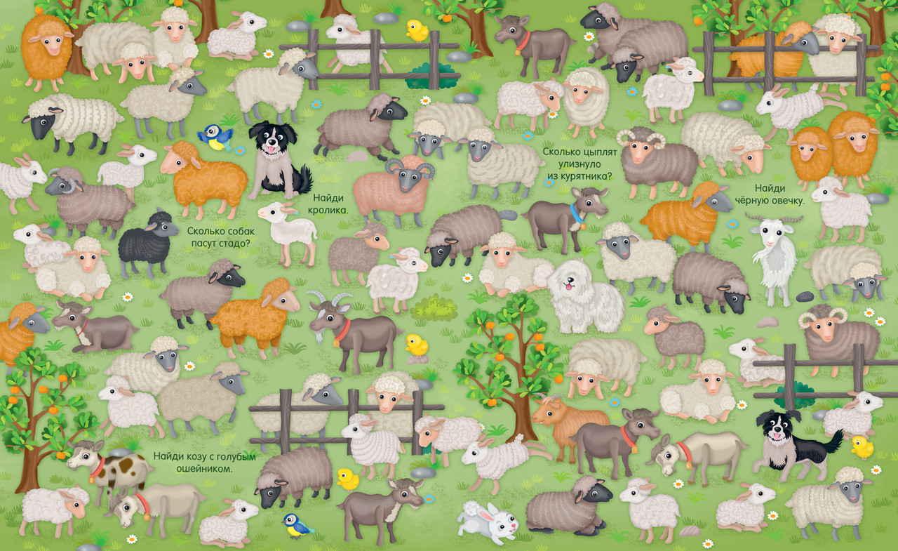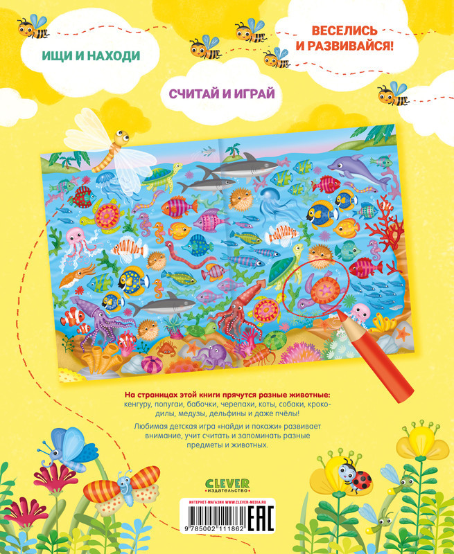 Серия: Найди и покажи В книге «Животные. Найди и покажи» вас ждут яркие панорамные развороты с любимой детской игрой на логику и внимательность. На страницах этой книги живут самые разные животные: кенгуру, попугаи, бабочки, черепахи, коты, собаки, крокодилы, медузы, дельфины и даже пчелы. Только самые зоркие отыщут тут двух одинаковых стрекоз, сосчитают всех цыплят и разглядят кролика в стаде овечек! Книга надолго займет вашего ребенка: разглядывайте иллюстрации, выполняйте задания на каждой странице, изучайте животный мир и тренируйте навыки счета. |