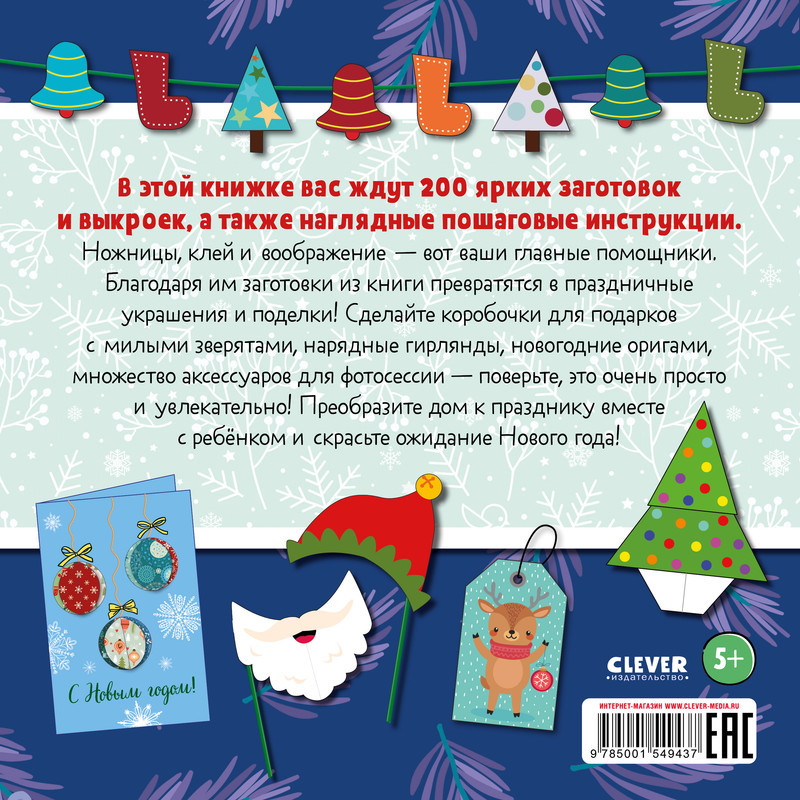 «Новогодние украшения и поделки из бумаги. 200 заготовок» — современное издание бестселлера для родителей, которые ценят хорошие книги и дарят малышам и детям постарше сказки, стихи, рассказы, сборники про котенка Шмяка, Тосю-Босю, Чика и Брики, с иллюстрациями Джейн Чапмен, книги про машины, транспорт, животных, динозавров, обучающие и развивающие, учебные пособия, азбуку, энциклопедии, адвент-календари, активити, игры, задания, поделки, мастерилки, задачи, задачки, раскраски, рисовалки, книги про рисование, загадки, ребусы, головоломки, лабиринты, книги формата «найди и покажи», книжки с заданиями, развивашки с окошками, «пиши-стирай», семейные календари, настольные игры, бумажную продукцию по детской психологии от таких издательств, как «АСТ», «Эксмо», «Альпина», Clever («Клевер»), «Росмэн», «Феникс-Премьер», «Счастье внутри». |