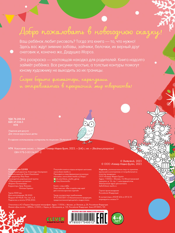 Новогодняя сказкановинка В данный момент этот товар отсутствует в продаже. Возможно, у нас найдется аналогичный или похожий товар здесь. Серия: Весёлые раскраски «Веселые раскраски. Новогодняя сказка» — это 64 добрых зимних сюжета и картинки для творческих малышей. Книжка не оставит равнодушным маленького непоседу и увлечет его надолго. Под обложкой ждут зимние забавы, зайчики, белочки, их верный друг снеговик и Дед Мороз. По раскрашенным картинкам можно придумывать свои новогодние истории, а еще их можно вырезать и украсить ими детскую комнату к празднику. Книга создана для детей — начинающих художников. Все рисунки простые, а толстые контуры помогут не выходить за их границы. |