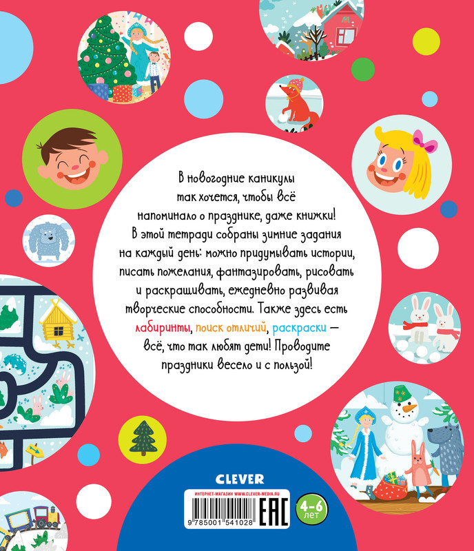 45 заданий и игр про Новый годновинка В данный момент этот товар отсутствует в продаже. Возможно, у нас найдется аналогичный или похожий товар здесь. Благодаря книжке-активити «45 заданий и игр про Новый год» ребенок проведет время весело и с пользой, выполняя разнообразные задания. Здесь есть все, что так любят дети: лабиринты, рисование по точкам, найди отличия, раскраски, творческие задания. Дайте малышу фломастеры или цветные карандаши, и его неуемная фантазия сделает все остальное! Ему предстоит написать письмо Деду Морозу и нарисовать портреты его помощников, обвести и раскрасить новогодние костюмы, сочинять интересные истории, найти и показать спрятанные буквы, составлять из них слова, найти отличия, пройти лабиринты и многое другое. В общем, скучно не будет! |