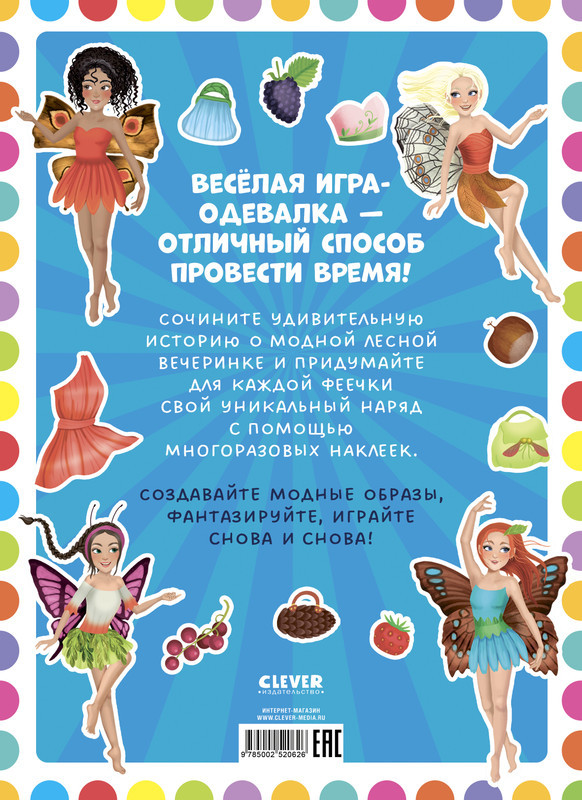 Серия: Наряди куколку Для всех, кто любит активити и игры «Одень куклу», — книжка с наклейками «Феечки»! Здесь вы найдете 50 ярких стикеров, среди которых есть всё для создания модных образов: одежда, платья, аксессуары. Из них можно составлять наряды для подружек-феечек, а можно устроить лесную вечеринку! Эта игра не только развивает фантазию и художественный вкус, она еще и тренирует мелкую моторику и ловкость пальчиков, а также глазомер и логическое мышление. Какой из феечек что лучше подойдет? Какие аксессуары подобрать к платью? |