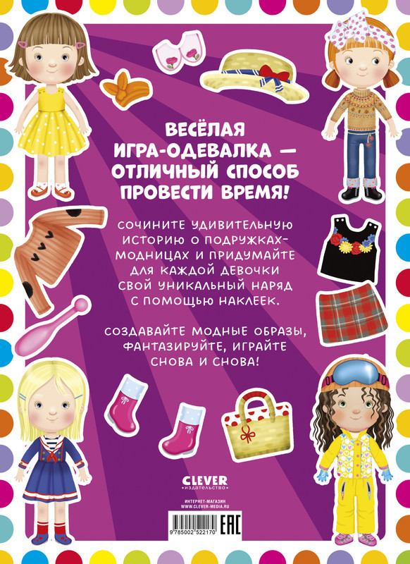 💳 Оплатить за товар можно при получении 🇰🇿 Есть бесплатная доставка по Казахстану от 1 дня 🎁 Копите бонусы с каждой покупки Серия: Наряди куколку Книжка с наклейками «Модные подружки» понравится всем, кто любит активити «Одень куклу»! На 4 листах книги 50 ярких стикеров, среди которых есть все для создания модных образов: одежда, платья, аксессуары. Из них можно составлять наряды для подружек-куколок, а можно устроить вечеринку и придумывать самые разные истории и игры! Эта книжка-одевалка развивает не только фантазию и художественный вкус, но ещё и мелкую моторику, и ловкость пальчиков, а также глазомер и логическое мышление. Какой из девочек-подружек что лучше подойдёт? Какие аксессуары подобрать к платью? Задания для будущих кутюрье. |