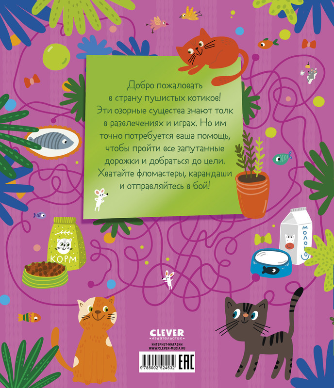 25 котолабиринтов для малышейновинка В данный момент этот товар отсутствует в продаже. Возможно, у нас найдется аналогичный или похожий товар здесь. Серия: Лабиринты Добро пожаловать в страну пушистых котиков! Эти озорные существа знают толк в развлечениях и играх. Но им точно потребуется ваша помощь, чтобы пройти все запутанные дорожки и добраться до цели. Хватайте фломастеры, карандаши и отправляйтесь в бой! |