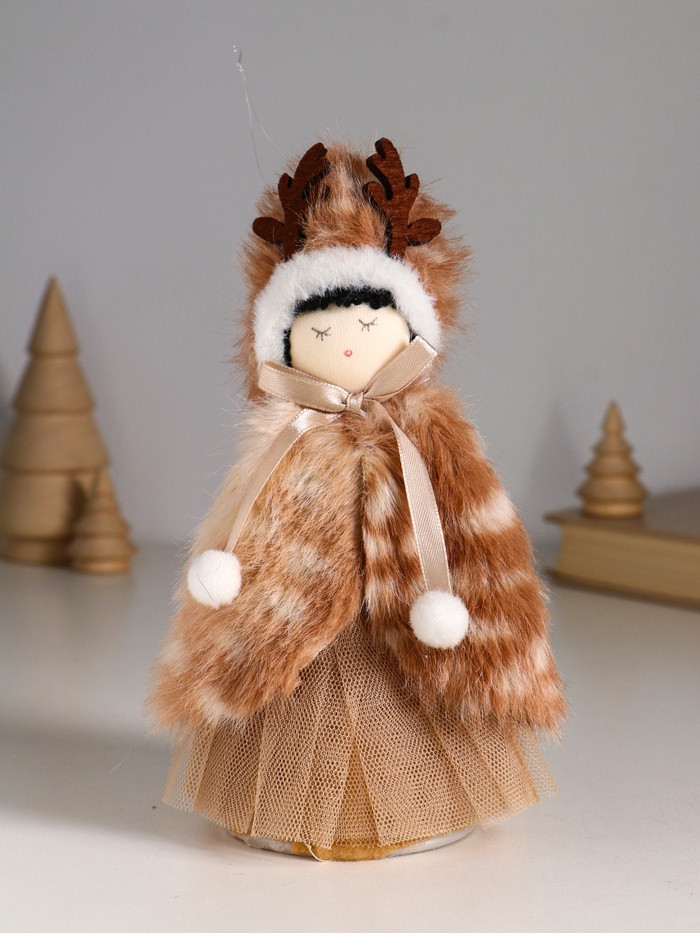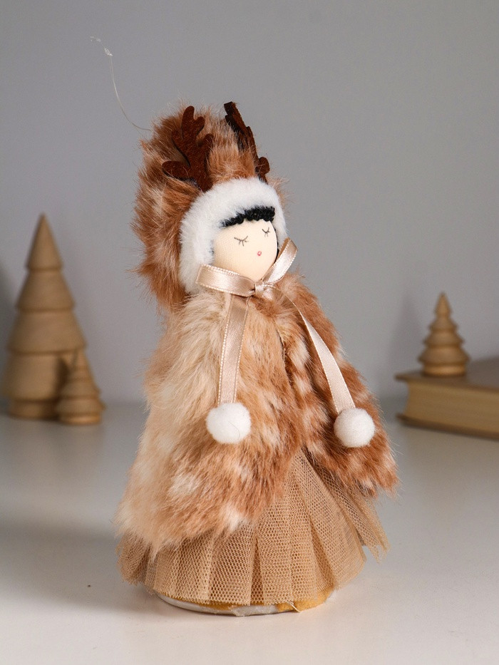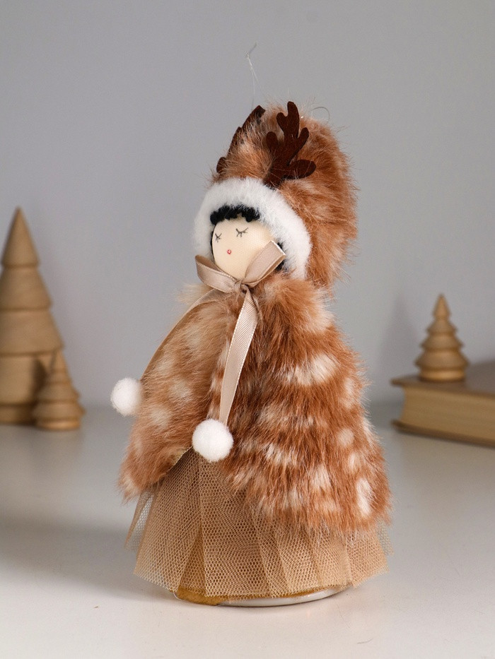 Кукла интерьерная текстильная «Девочка в меховой накидке, в шапке с рожками»новинка