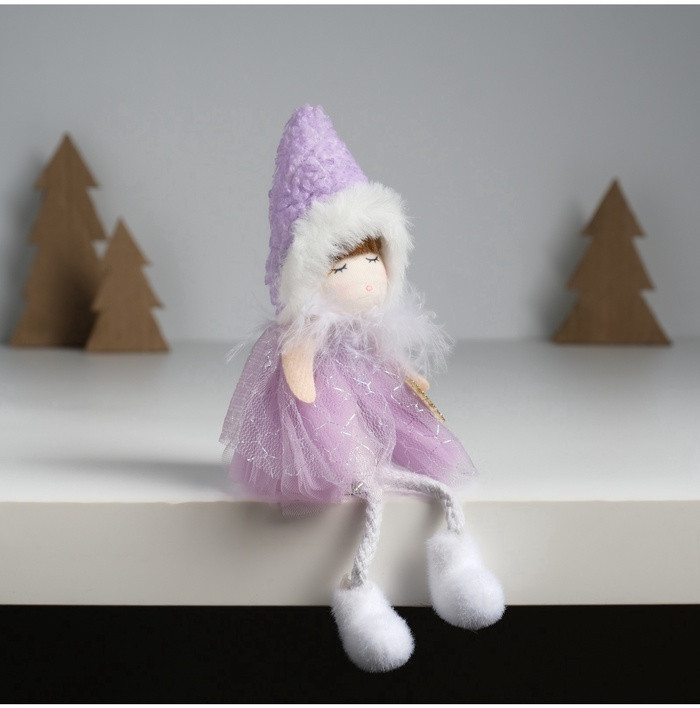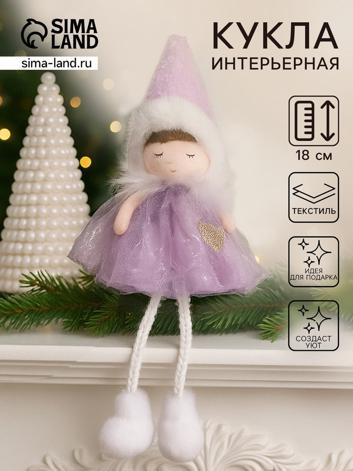 Кукла интерьерная текстильная «Девочка в сиреневом платьишке с пушистым воротником»новинка -25%