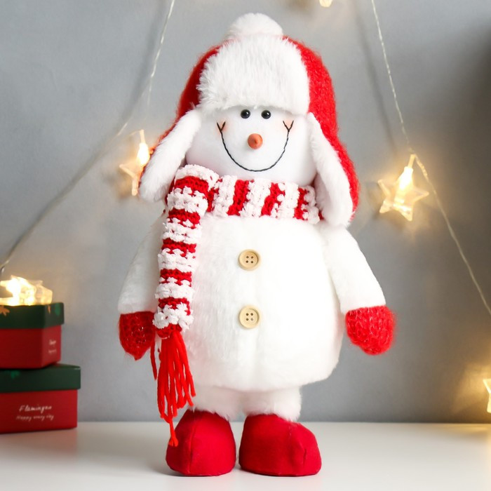 Кукла интерьерная текстильная «Снеговик в красной шапке-ушанке с бомбошкой»новинка -40%