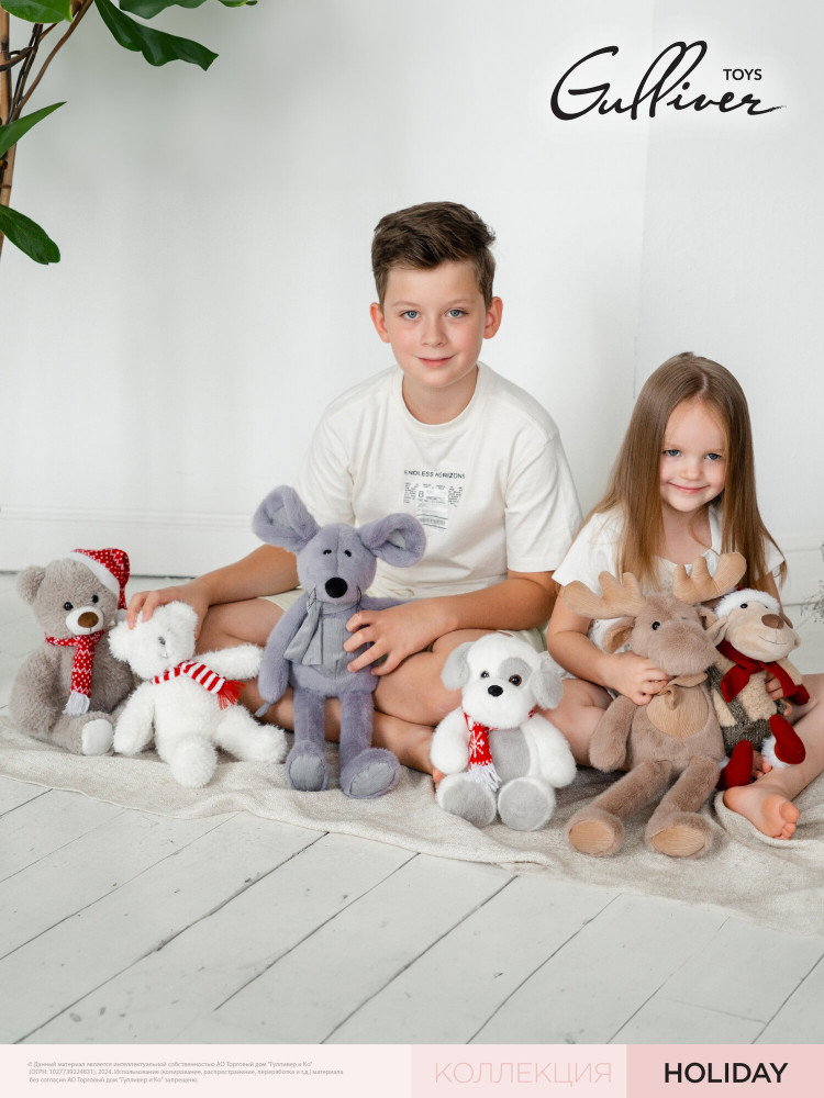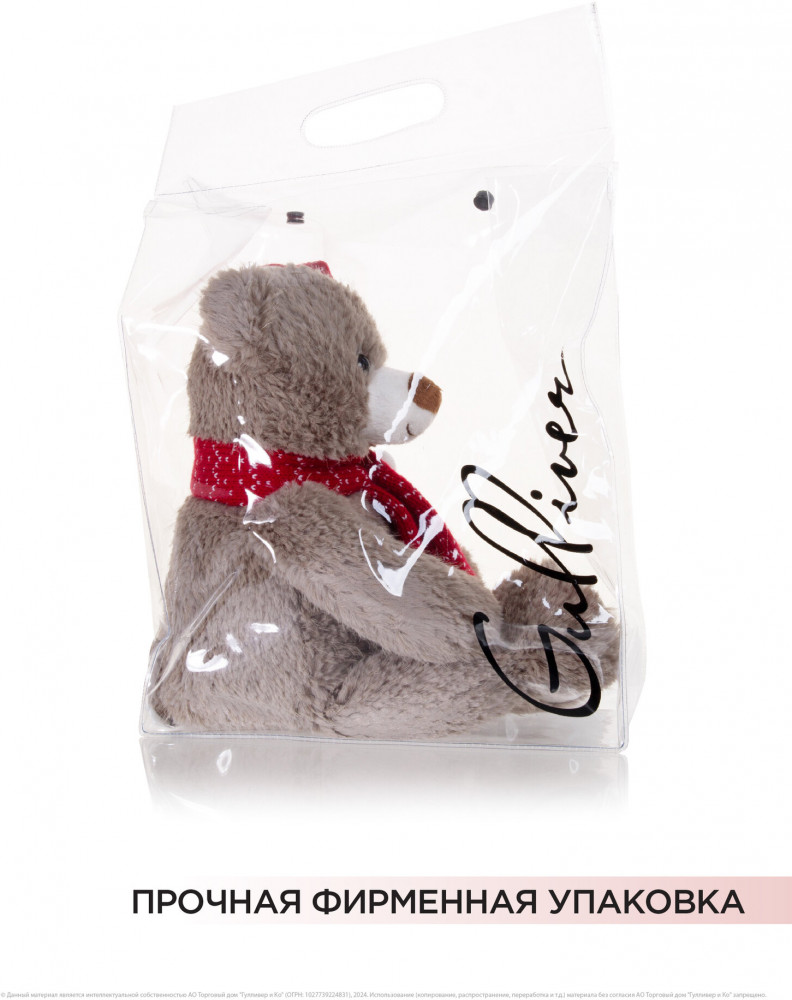Серия: Holiday Косолапый мишка в колпаке и шарфе из коллекции Holiday мягких игрушек Gulliver растопит ваше сердце своим милым внешним видом и очаровательной мордочкой. Плюшевый медведь подарит много позивных моментов любому ребенку. Мишка изготовлен из мягкого меха с подшерстком и очень приятен на ощупь. Игрушка мишка красивого серо-коричневого оттенка, с белой мордочкой и лапками, а также коричневым носом. Мишка плюшевый — прекрасный подарок для мальчика или девочки на День Рождения или Новый год, а также без повода. Такая красивая мягкая игрушка займёт особое место в детской комнате, детской кроватке или на полке. Медведь плюшевый средних размеров, 35 см, поэтому может стать лучшим компаньоном для малыша в детском саду, на празднике или утреннике, а также на прогулке. Мягкая игрушка медведь упакована в плотную прозрачную брендированную сумочку на кнопках, которая одновременно служит и подарочной упаковкой. Плюшевая игрушка изготовлена из безопасных гипоаллергенных материалов. Товар сертифицирован. В коллекции Holiday представлены и другие интересные игрушки — мягкая игрушка мышка, плюшевая собачка, мягкая игрушка лось и т.п. |