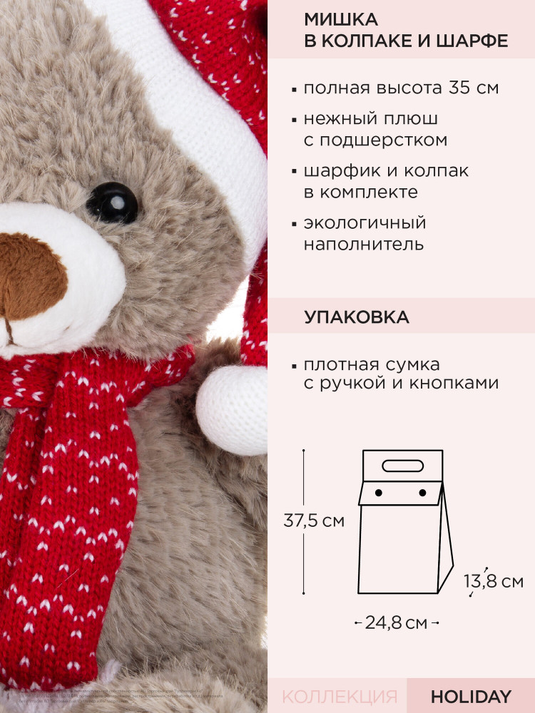 | Gulliver Игрушка мягкая «Мишка в колпаке и шарфе»новинка -25%