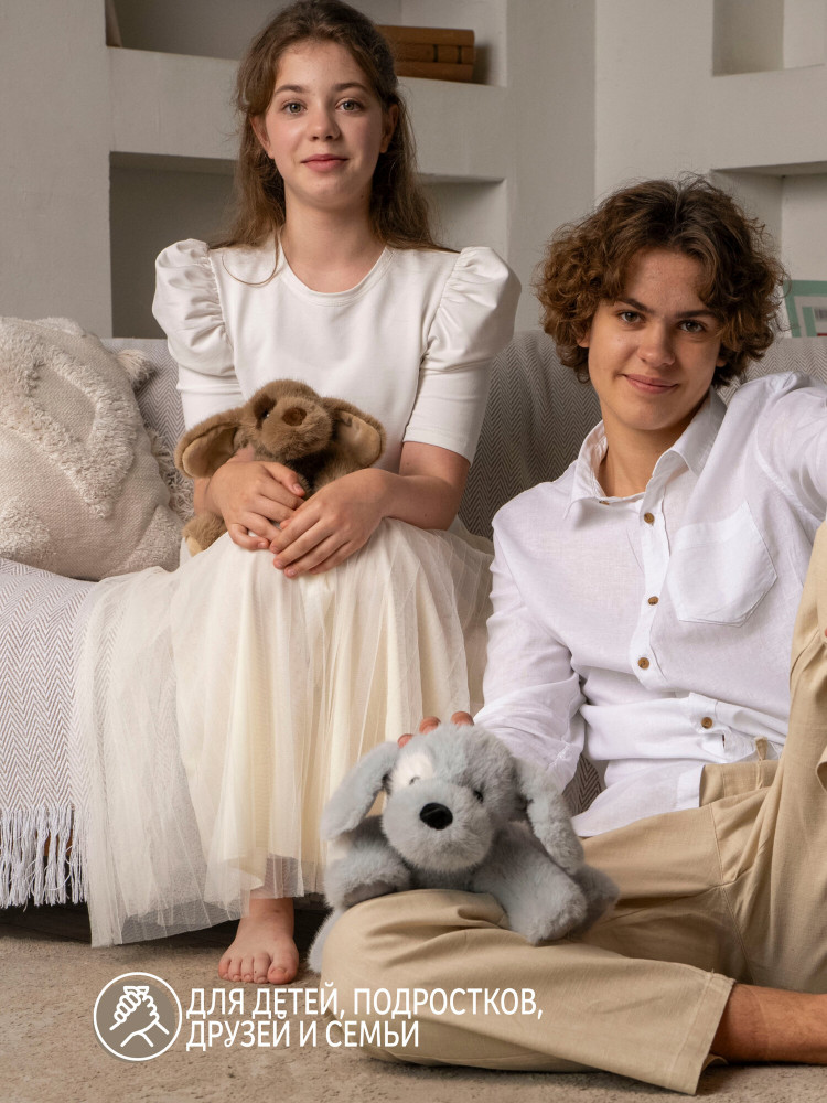 Серия: Classic Мягкая игрушка Собачка Сеня из коллекции Classic — это очаровательный щенок высотой 27 см с гладкой нежной шерстью серого цвета. У неё милая мордочка и красивые глазки, которые сразу же вызывают улыбку. Небольшой размер и приятная текстура делают Сеню идеальным пушистым другом для самых разных игр и отдыха. Эта собака обнимашка отлично подойдёт для сна — она помогает малышам успокоиться и чувствовать себя уютно в любое время. Сеню можно брать с собой в дорогу, в детский сад или на прогулку. Она станет надёжным спутником, который всегда рядом. Плюшевая собака — это не только мягкая игрушка, но и развивающая. Она воспитывает чувство заботы и помогает малышам учиться дружить. Сеня — настоящий антистресс, который подарит покой и радость как детям, так и подросткам. Плюшевая собака подойдет в подарок на день рождения или просто так, чтобы порадовать девочку, мальчика, сестру или брата. Такой подарок станет желанным для любимой девушки, мамы, подруги или коллеги. Пушистый щенок украсит любую коллекцию игрушек, даря тепло и радость каждому, кто его обнимет. Эта маленький щенок — надёжный друг, который придаст уют дому и станет любимым спутником как для детей, так и для взрослых. Собачка Сеня — мягкая, приятная на ощупь, она подарит вам светлые и радостные моменты каждый день. |