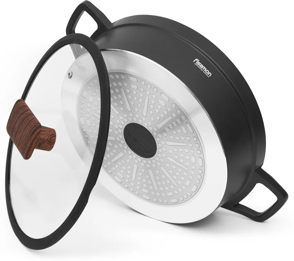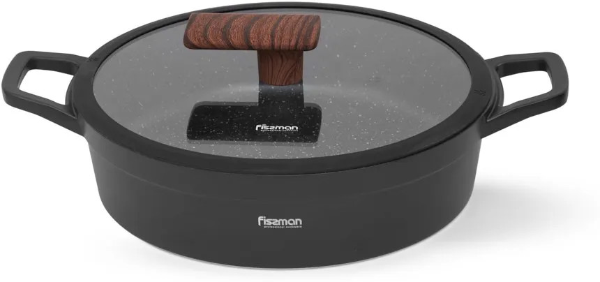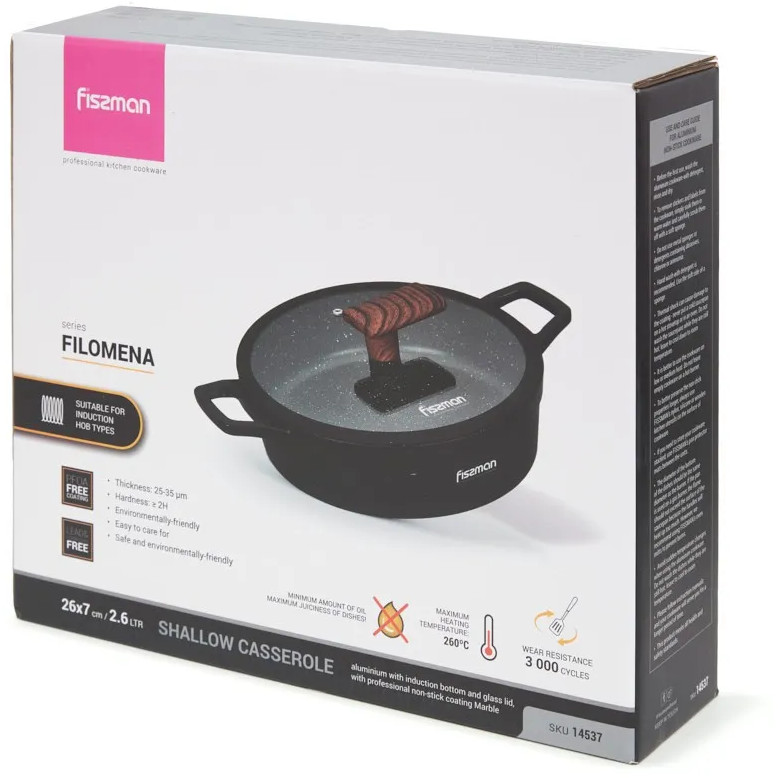 Посуда с антипригарным покрытием вошла в нашу жизнь относительно недавно, но практически сразу завоевала уважение. Идея о том, чтобы жарить с небольшим количеством масла, делая еду диетической, пришлась по душе поклонникам здорового питания. Серия Filomena с покрытием Marble собственной разработки Fissman покорит Вас с первого взгляда. Литая алюминиевая основа, качественное антипригарное покрытие, классический дизайн, благородный черный цвет с белыми вкраплениями делают коллекцию Filomena любимой и желанной на каждой кухне. Посуда серии Filomena станет надежным союзником в ежедневном приготовлении вкусной и полезной еды. Выбирайте лучшее для своей семьи: доверьтесь опыту Fissman.