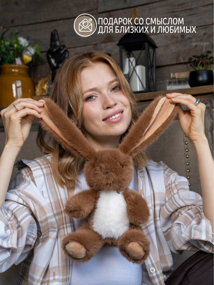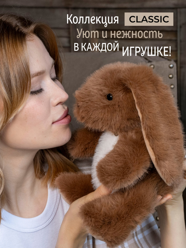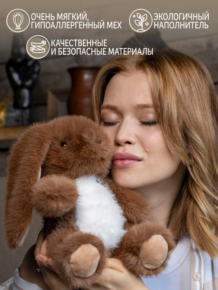Плюшевая детская игрушка зайчик коричневый Ронни — это отличный выбор для подарка. Мягкая зайка с длинными ушами и аккуратным чёрным носиком быстро становится любимой обнимашкой для сна малышей и подростков. Пушистый кролик выполнен из материалов высокого качества, что делает его безопасным для детей 3 лет. Маленькие черные глазки придают зайчику выразительность, а светло-коричневые ушки с внутренней стороны и белый животик делают внешний вид особенно привлекательным. Небольшой размер позволяет удобно брать его в дорогу, на улицу или в детский сад. Плюшевый заяц отличается приятной на ощупь меховой текстурой — обнимашка перед сном. Такой мягкий друг помогает ребенку быстрее расслабиться и уснуть, создавая уютную атмосферу в детской комнате. Милый зайка станет запоминающимся подарком для любой девочки или девушки: к примеру, дочка будет рада получить милого друга просто так или по случаю дня рождения. Маме понравится такой знак внимания от ребёнка — ведь плюшевые игрушки напоминают о теплых моментах детства. Коллега по работе оценит искренний жест заботы вне зависимости от повода. Коллекционерам мягких игрушек тоже придётся по душе заяц Ронни из серии Classic — благодаря продуманному дизайну он гармонично дополнит домашнюю коллекцию милых зверей разных форматов. Коричневый кролик универсален: он одинаково хорошо смотрится как в комнате малышей, так и у подростков.