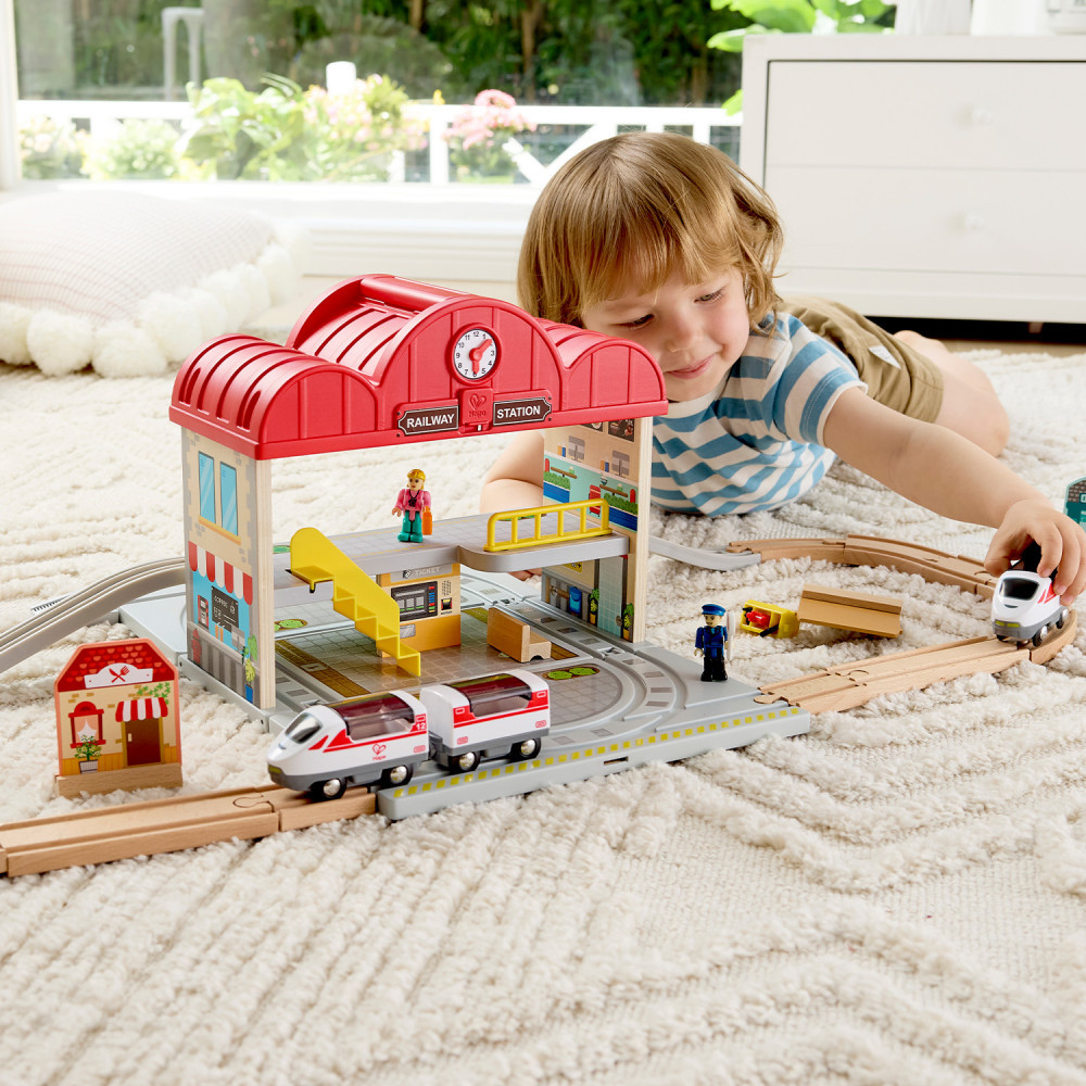 | Hape Портативный игровой набор «Железнодорожная станция»