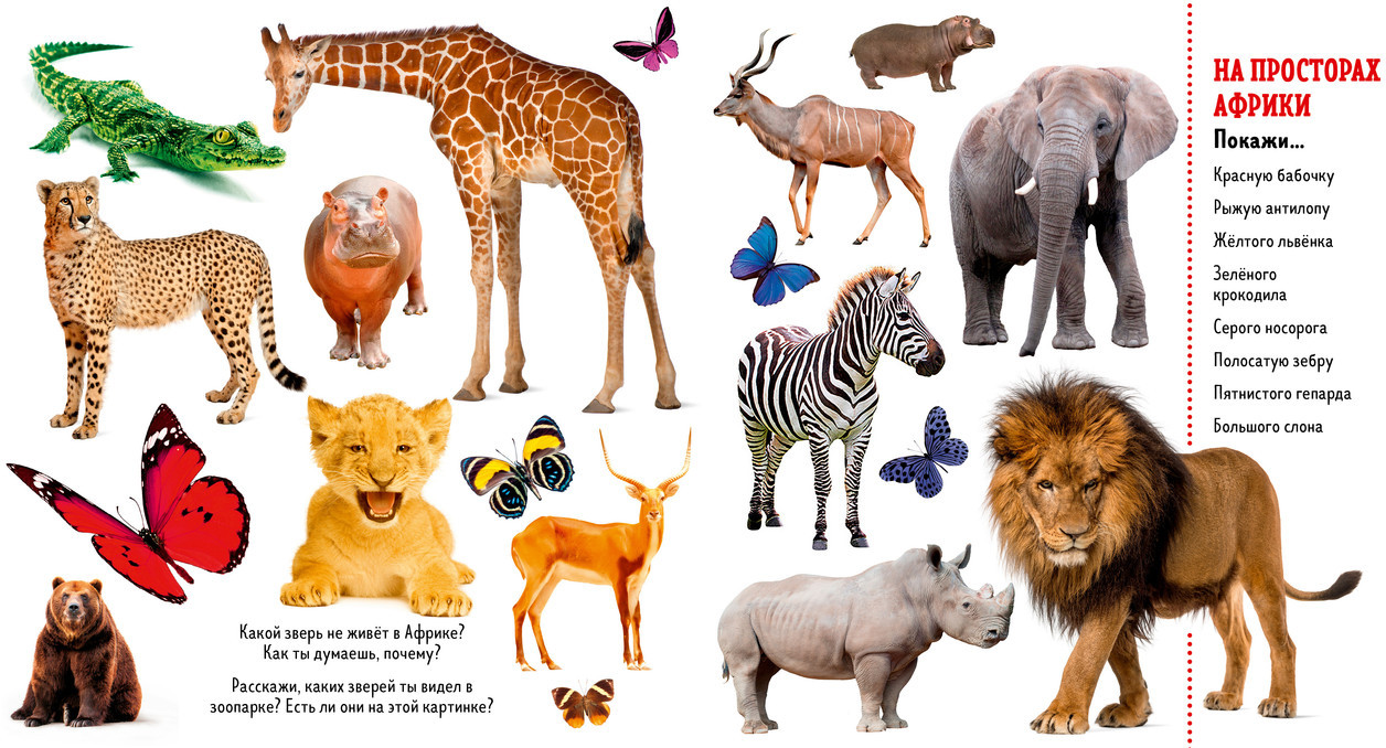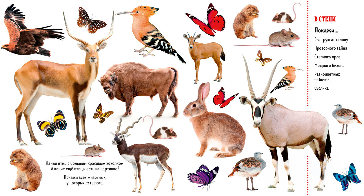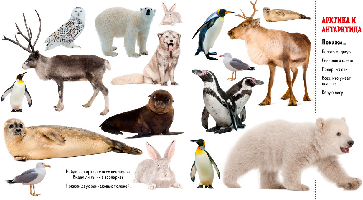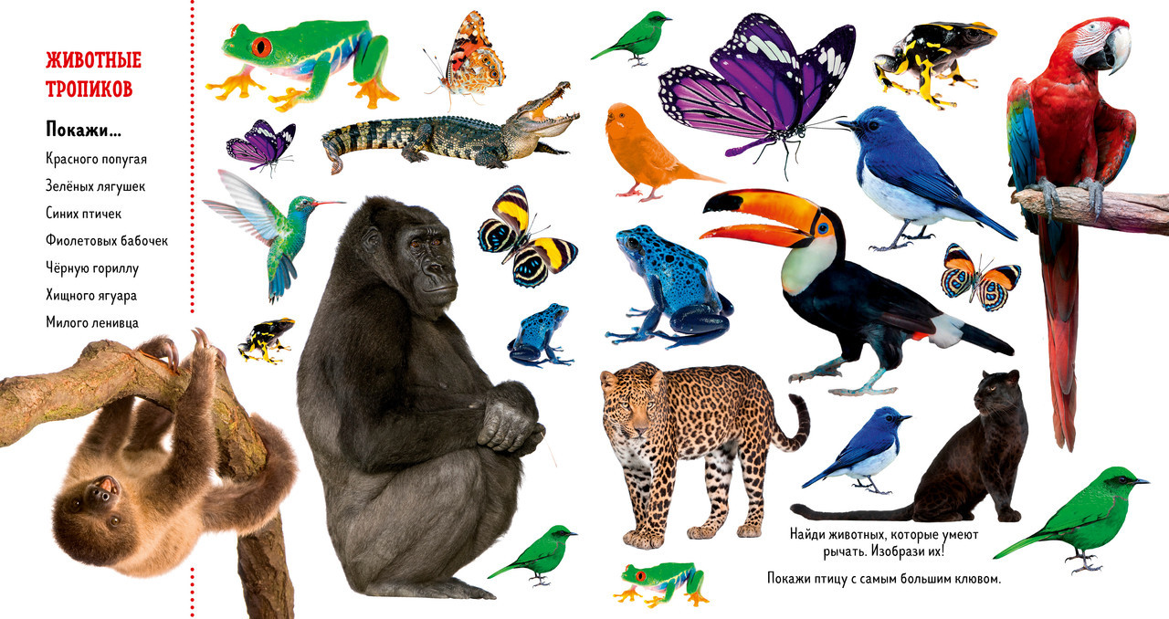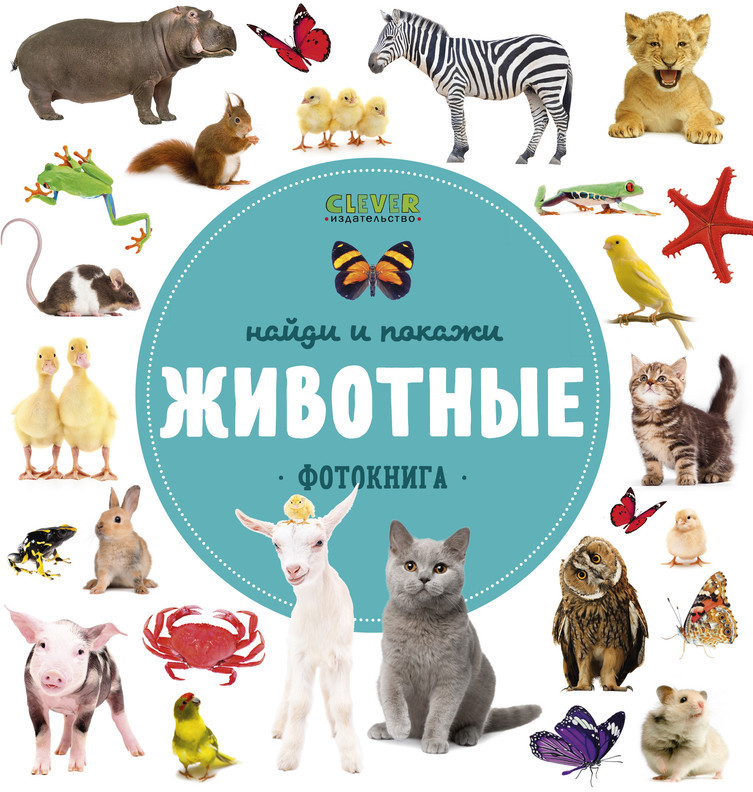 Серия: Найди и покажи. Фото-книга Открыв эту яркую фотокнигу, малыш легко выучит названия самых разных животных, познакомится с оттенками цветов и освоит первый счет. Ребенок изучит животных в разных средах обитания: в доме, в лесу, в море, в зоопарке, у бабушки в деревне. На каждом развороте — множество удивительных зверюшек от шустрого котика до быстрого бизона. Рассматривайте картинки, считайте, ищите на рисунках ответы на забавные вопросы и задания, придумывайте истории на основе красочных иллюстраций, а также играйте в веселую игру «Найди и покажи» всей семьей.