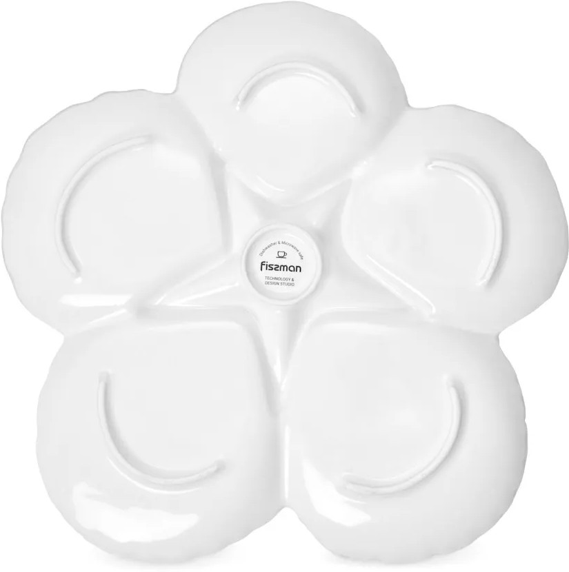 • функциональный дизайн — глубокая форма и широкий диаметр позволяют удобно разместить до 6 видов закусок: оливки, сыр, овощи, орешки, соусы и многое другое;