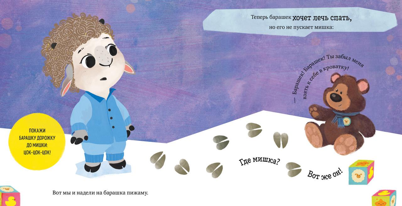 В данный момент этот товар отсутствует в продаже. Возможно, у нас найдется аналогичный или похожий товар здесь. Серия: Играем. Учимся. Развиваемся Интерактивная книжка — игра «Сладких снов» познакомит с милым барашком Бяшей, который, как и все малыши, еще только начинает познавать мир. Помогая ему, ваш ребенок и сам научится засыпать самостоятельно.