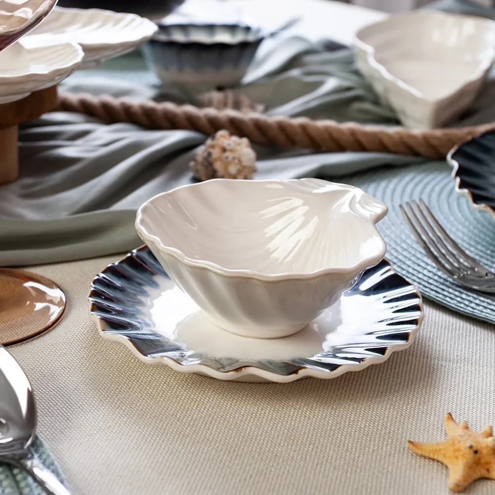 Sea shell — это не просто посуда, это настоящее произведение искусства для вашего стола. Миска диаметром 12 см выполнена из высококачественного фарфора и повторяет форму натуральной ракушки, придавая любой сервировке утончённый и свежий вид.
