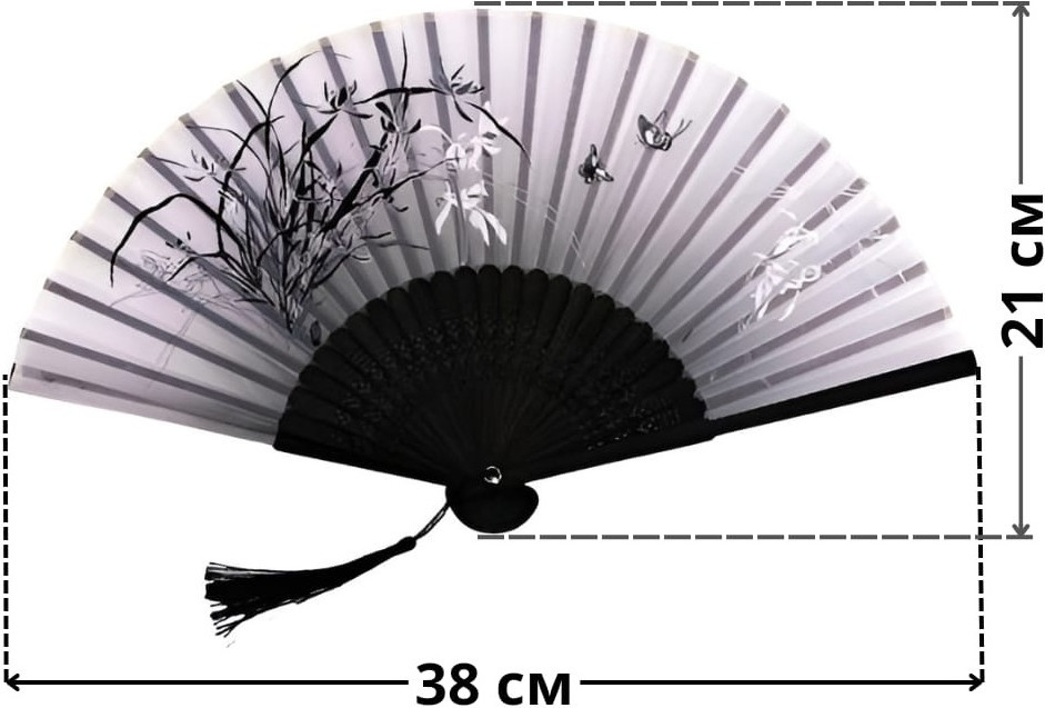 Складной веер из ткани и дерева с изящным рисунком в японском стиле. Лёгкий и прочный, идеально подходит для вечеринки, фотосессии или в качестве аксессуара в жаркую погоду. Удобно держится в руке, не занимает много места в сумке. Раскрытый размер — 38 см. Элегантный дизайн, ажурная резьба и стильный рисунок придают уникальность. Натуральные материалы шёлк, бамбук и дерево обеспечивают долговечность и комфорт. Подходит для женщин, которые ценят стиль и удобство в повседневной жизни, а также для тех, кто хочет добавить нотку изысканности в свои танцевальные вечеринки. |