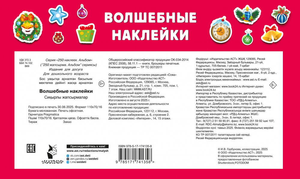 Серия: 250 наклеек. Альбом «Волшебные наклейки» — это более 250 стикеров и 6 страниц цветных фонов для безграничной детской фантазии. Играя с книжкой, мальчишки и девчонки смогут совершить настоящее путешествие в яркий, незабываемый мир самого любимого праздника — Нового года. Чудесные иллюстрации — простор для креатива и воображения + коллекция наклеек, которые помогут оживить зимнюю сказку и создать собственную неповторимую книгу. Все новогодние сюжеты — на мелованных страницах отличного качества, поэтому стикеры можно наклеивать много раз! |