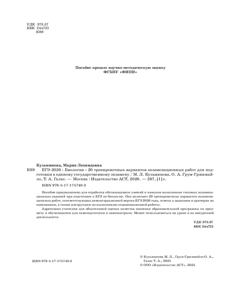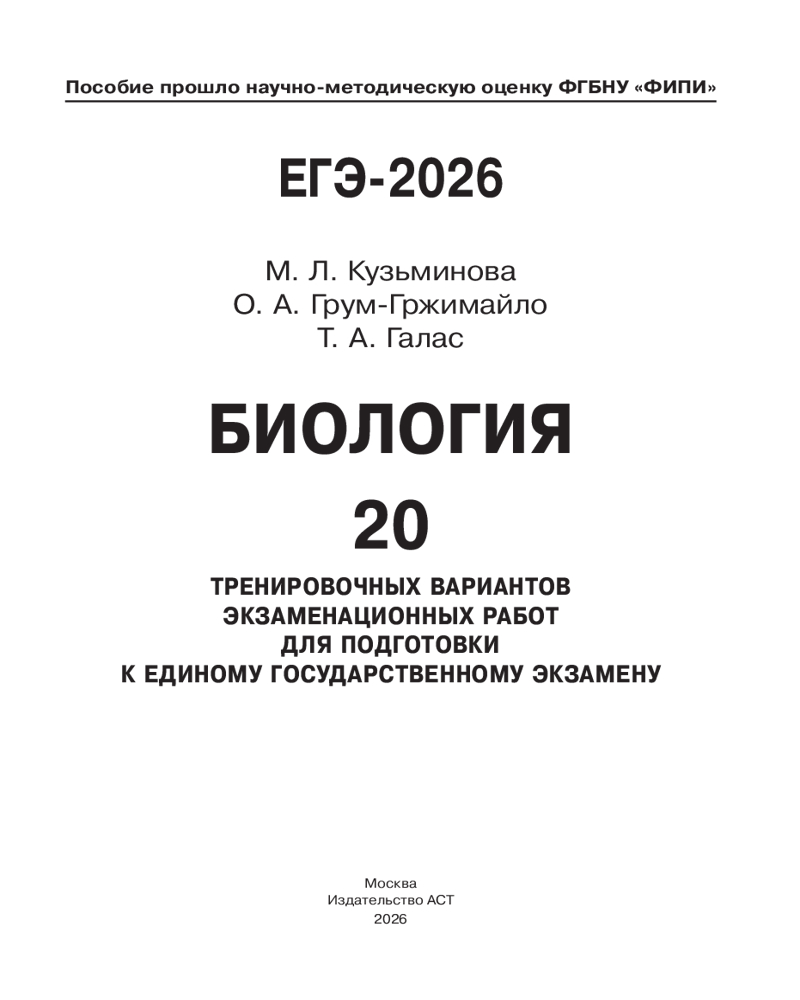 ЕГЭ-2026. Биология. 20 тренировочных вариантов экзаменационных работ. 560 заданийМария Леонидовна Ишевская, Татьяна Александровна Галас, Ольга Алексеевна Грум-Гржимайло +138