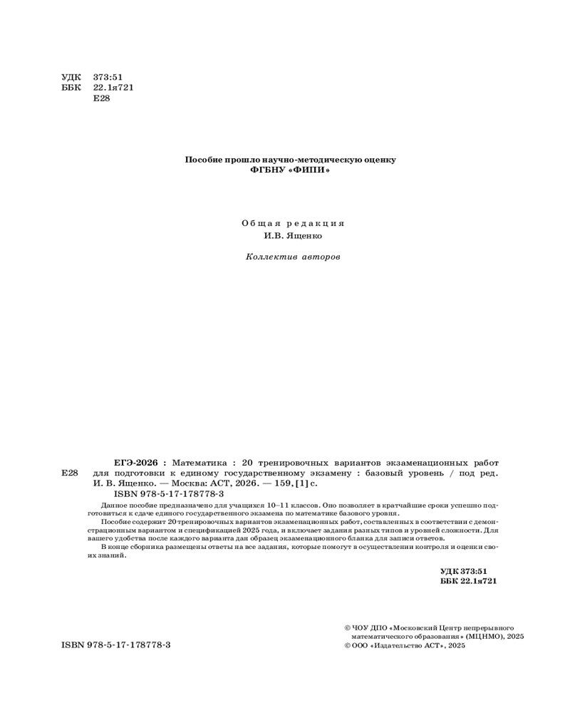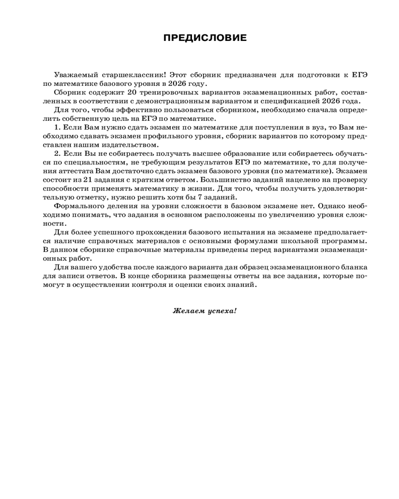 ЕГЭ-2026. Математика. 20 тренировочных вариантов экзаменационных работ для подготовки к ЕГЭ. Базовый уровеньновинка